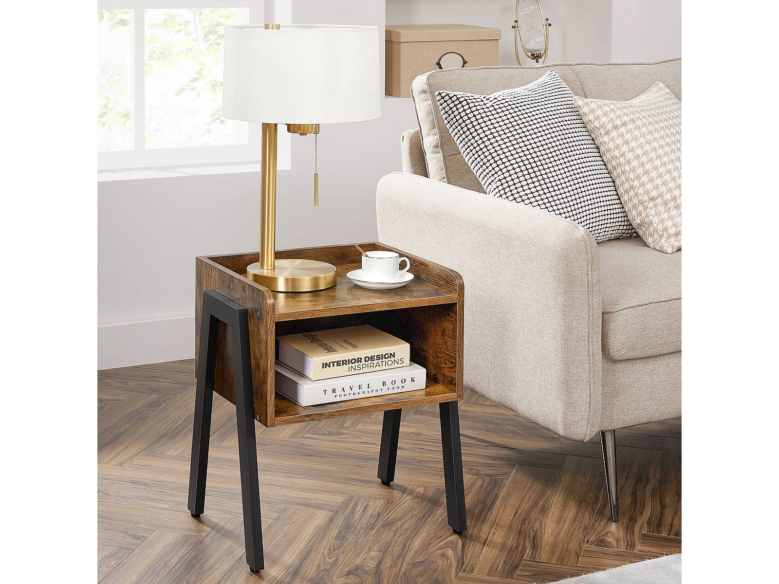 Beistelltisch 46x35x51,5 cm braun rustikal alinru