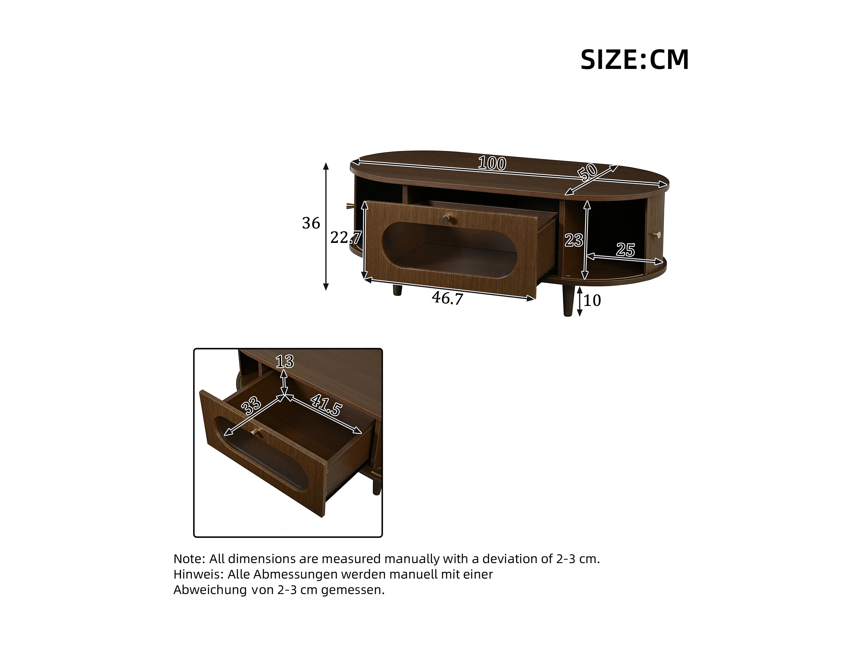 Beistelltisch aus Holzoptik-MDF 100x50x36 cm - 1 Schublade und 2 Schiebetüren - MDF - Braun