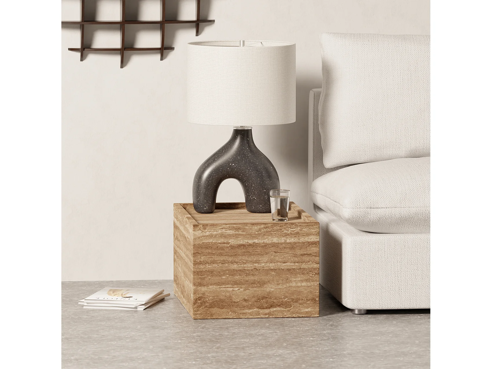 Beistelltisch aus Travertin – Walnuss – Crow Wide