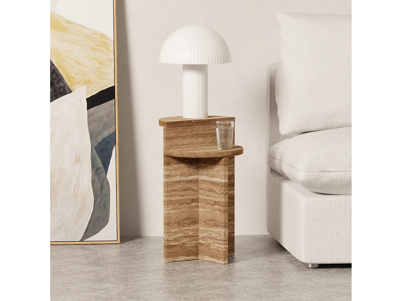 Beistelltisch aus Travertin – Walnuss – Swan Tall