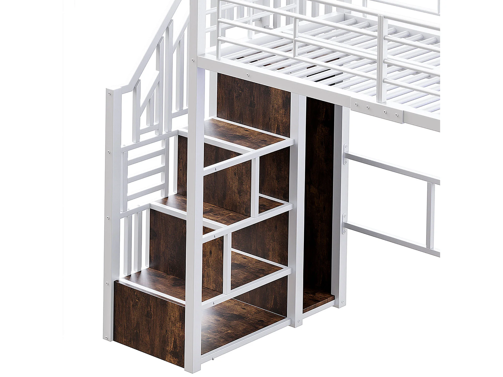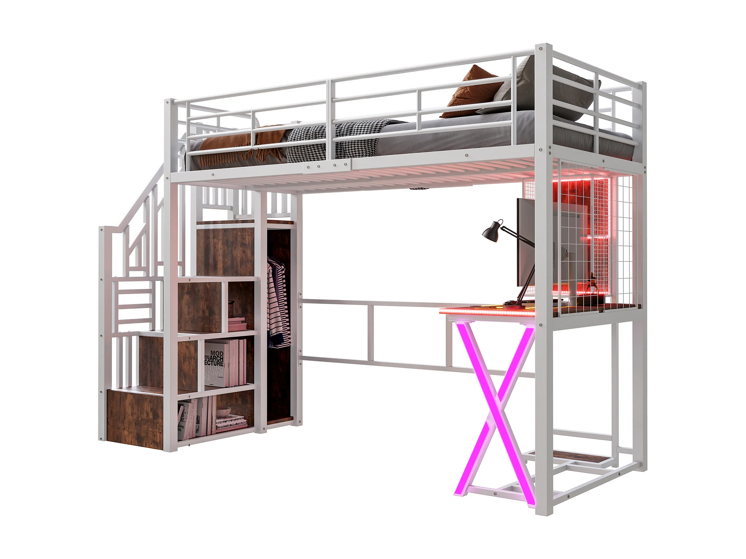 Bergbett 90 x 200 cm – mit LED-Beleuchtung und Ablagen – weiß – ohne Matratze