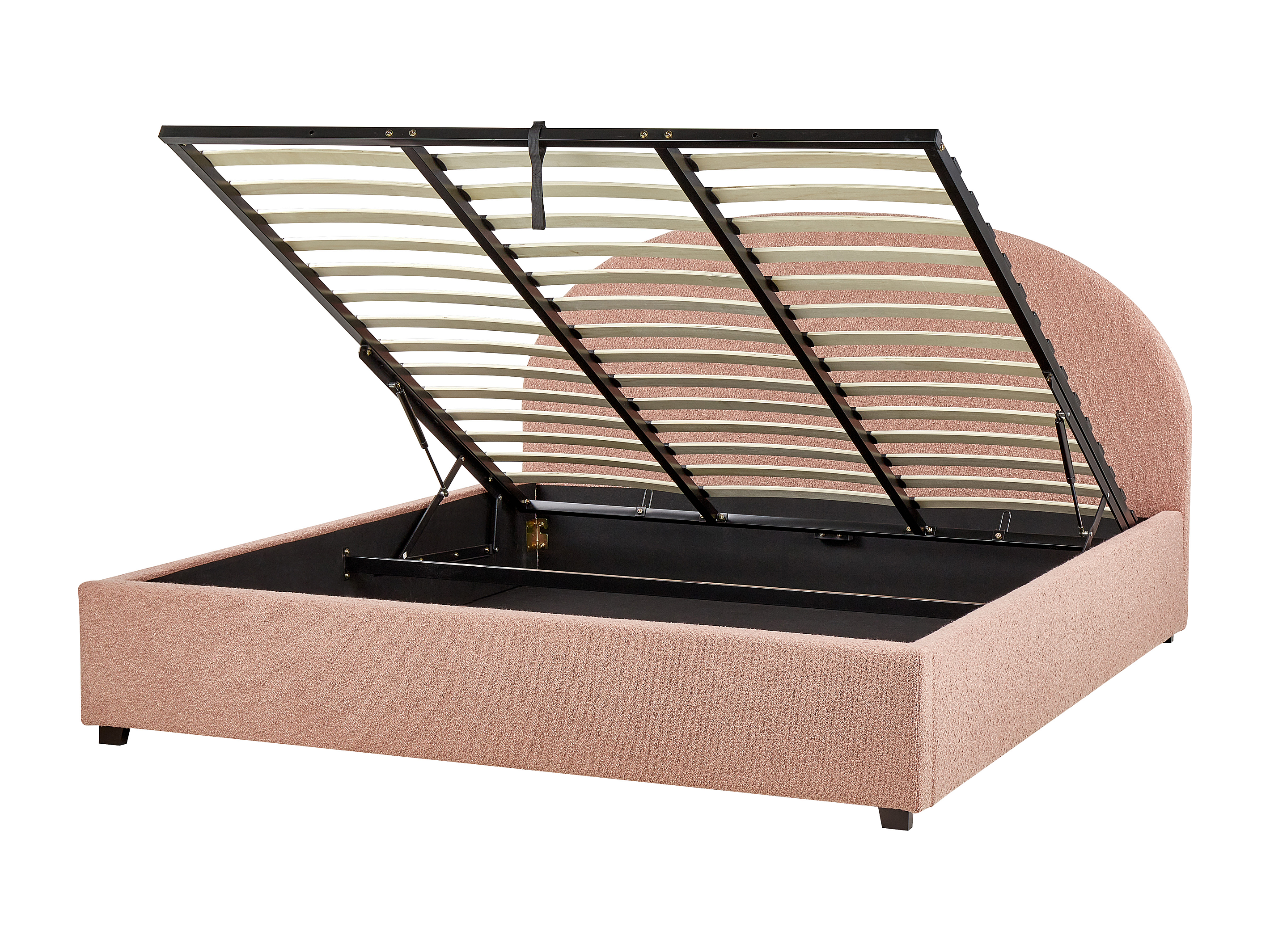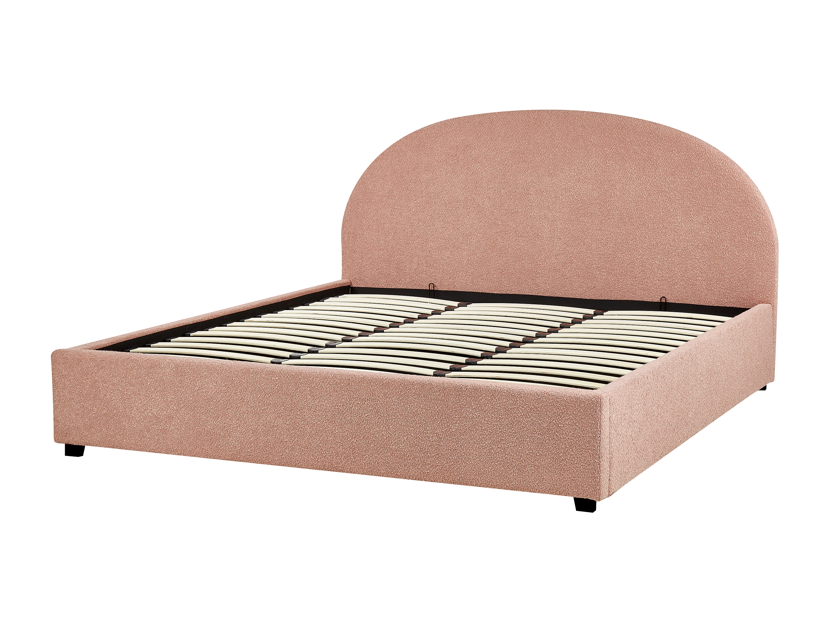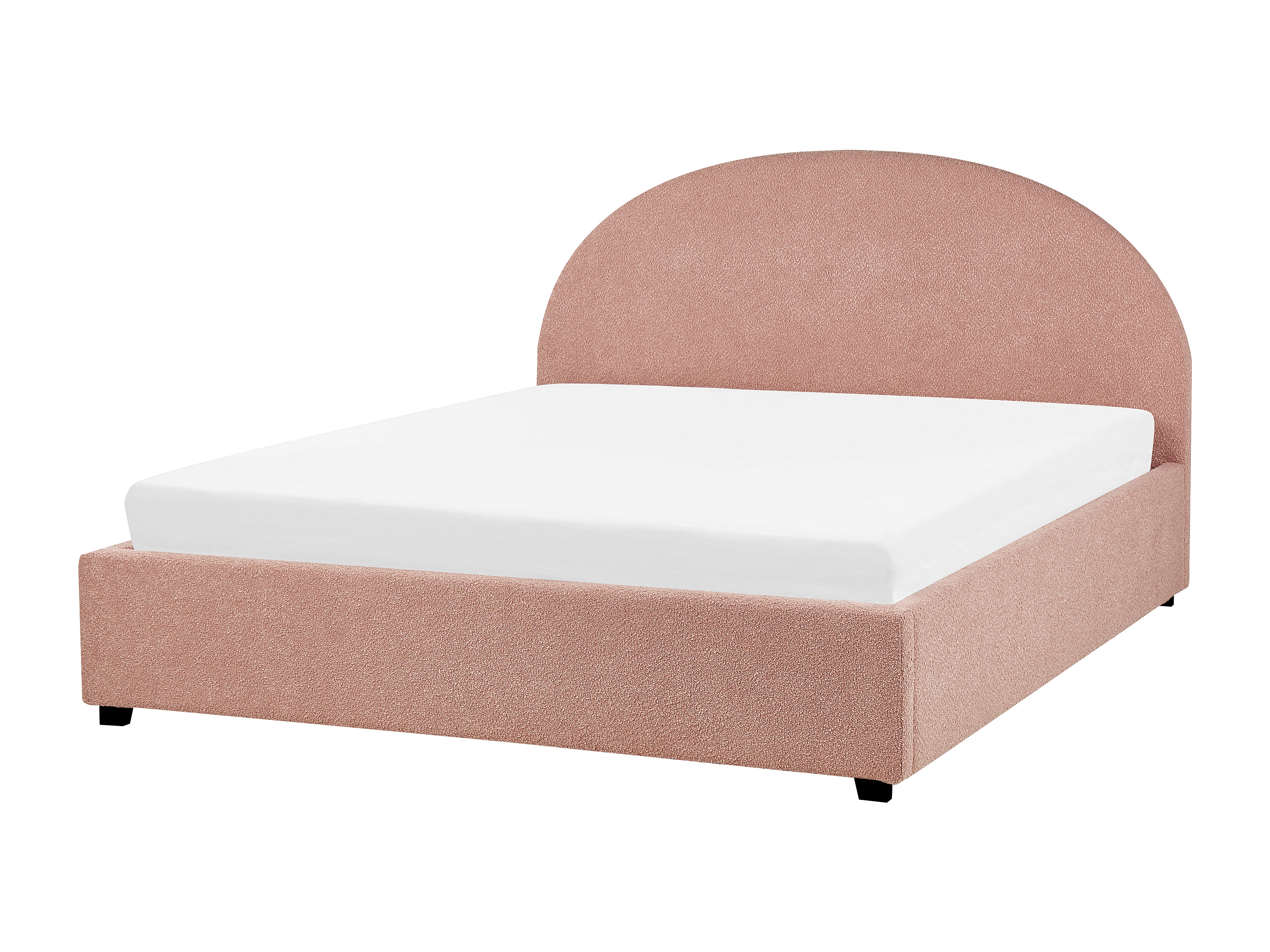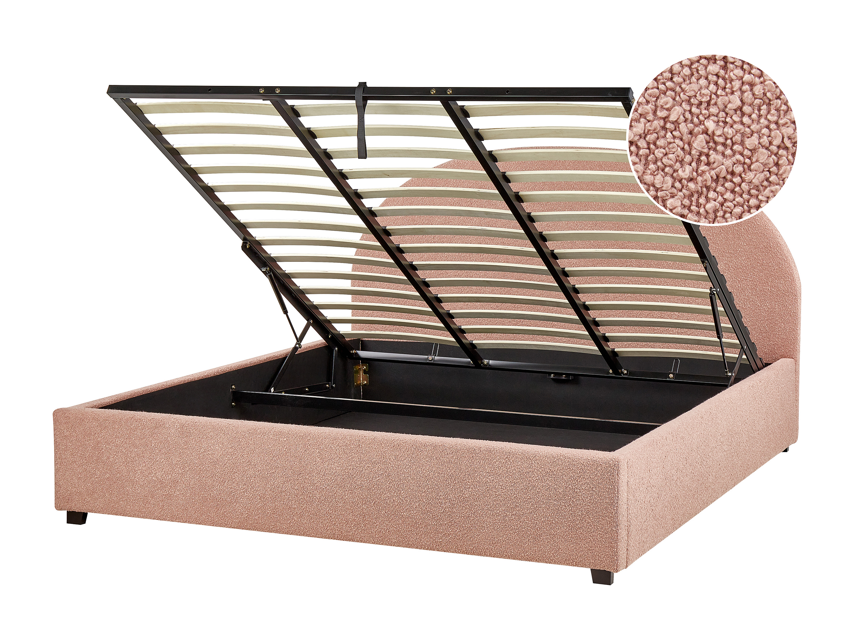 Bett Bouclé rosa mit Kopfteil Bettkasten Lattenrost 180 x 200 cm Retro Vaucluse