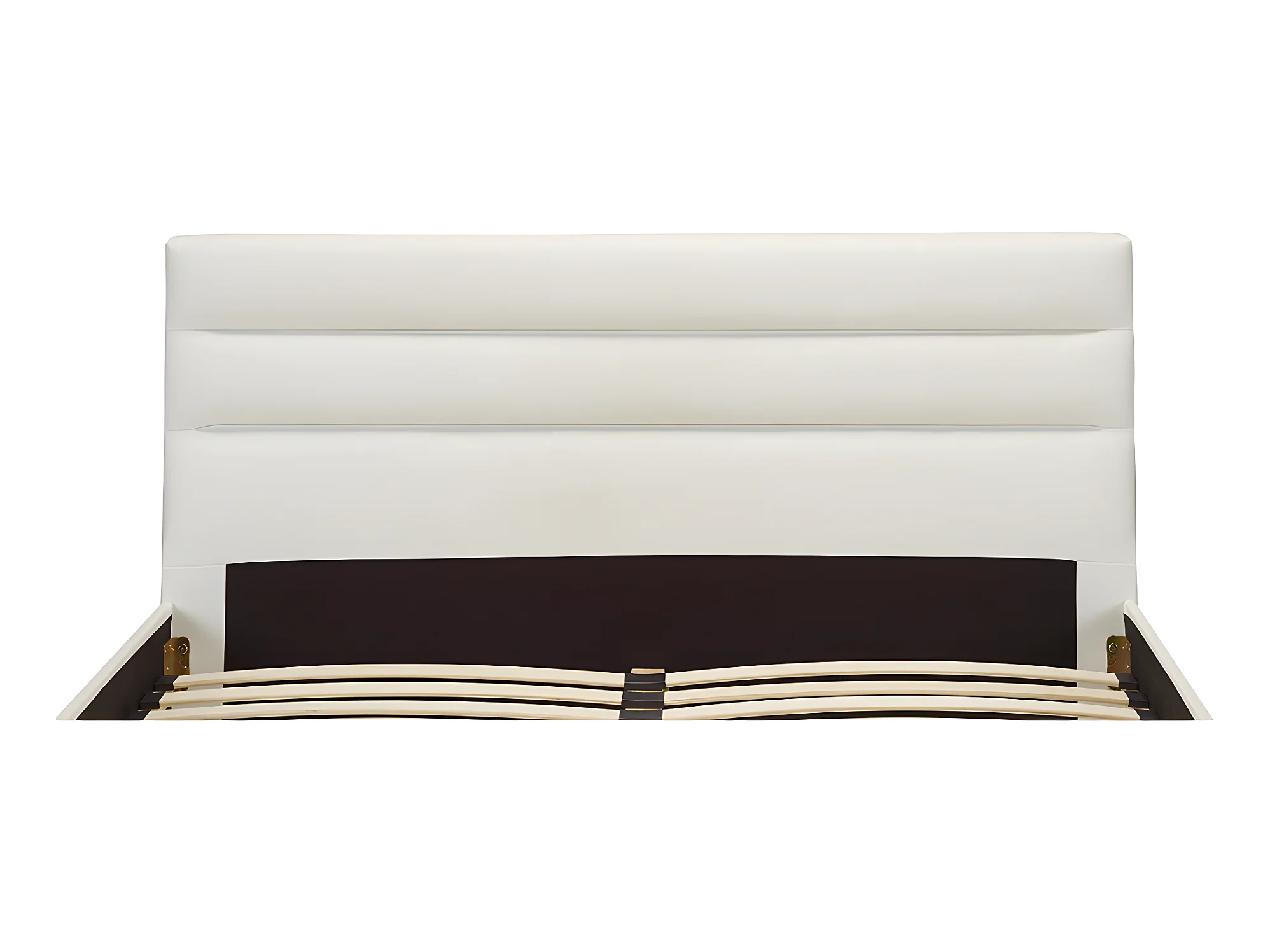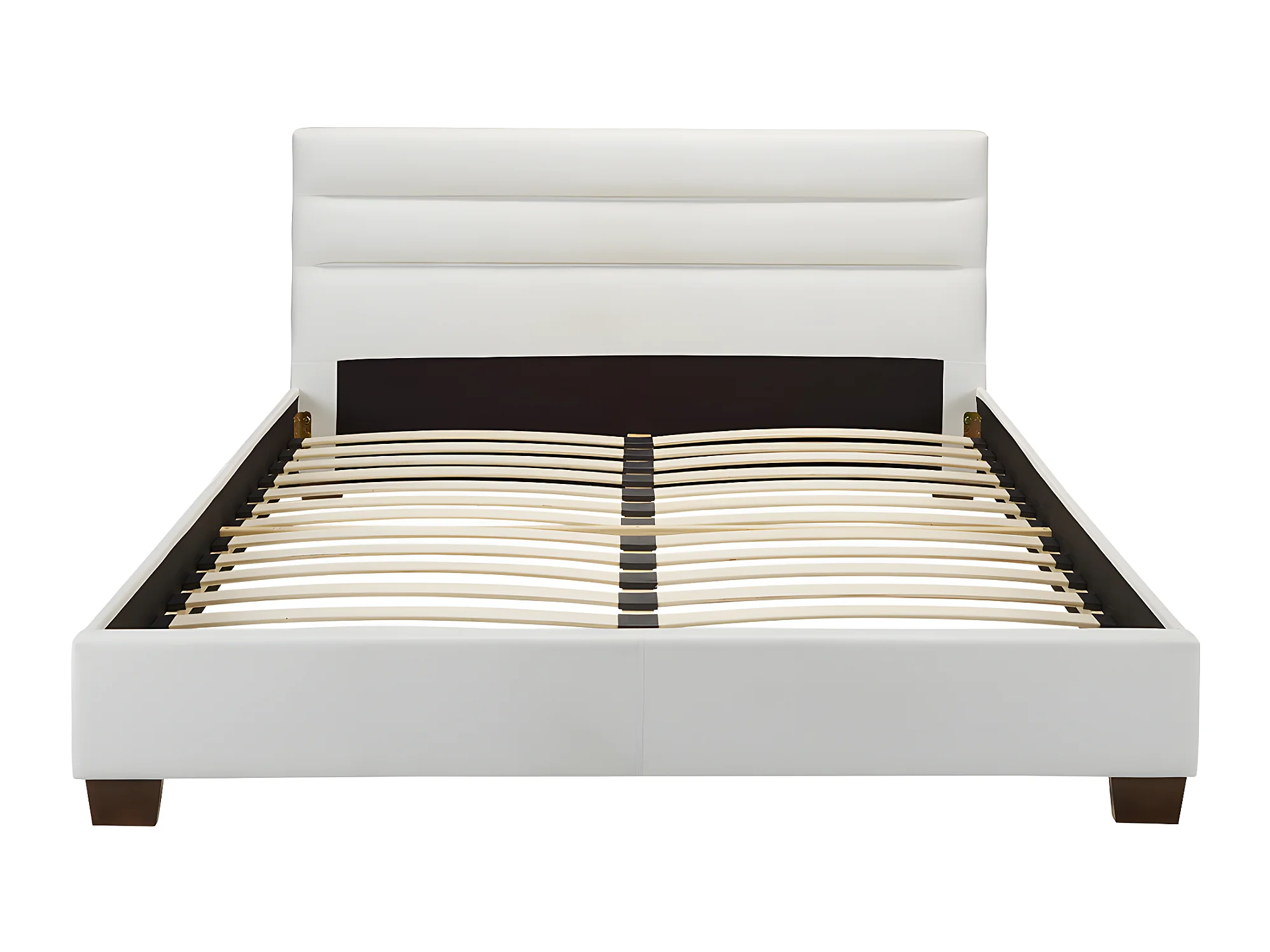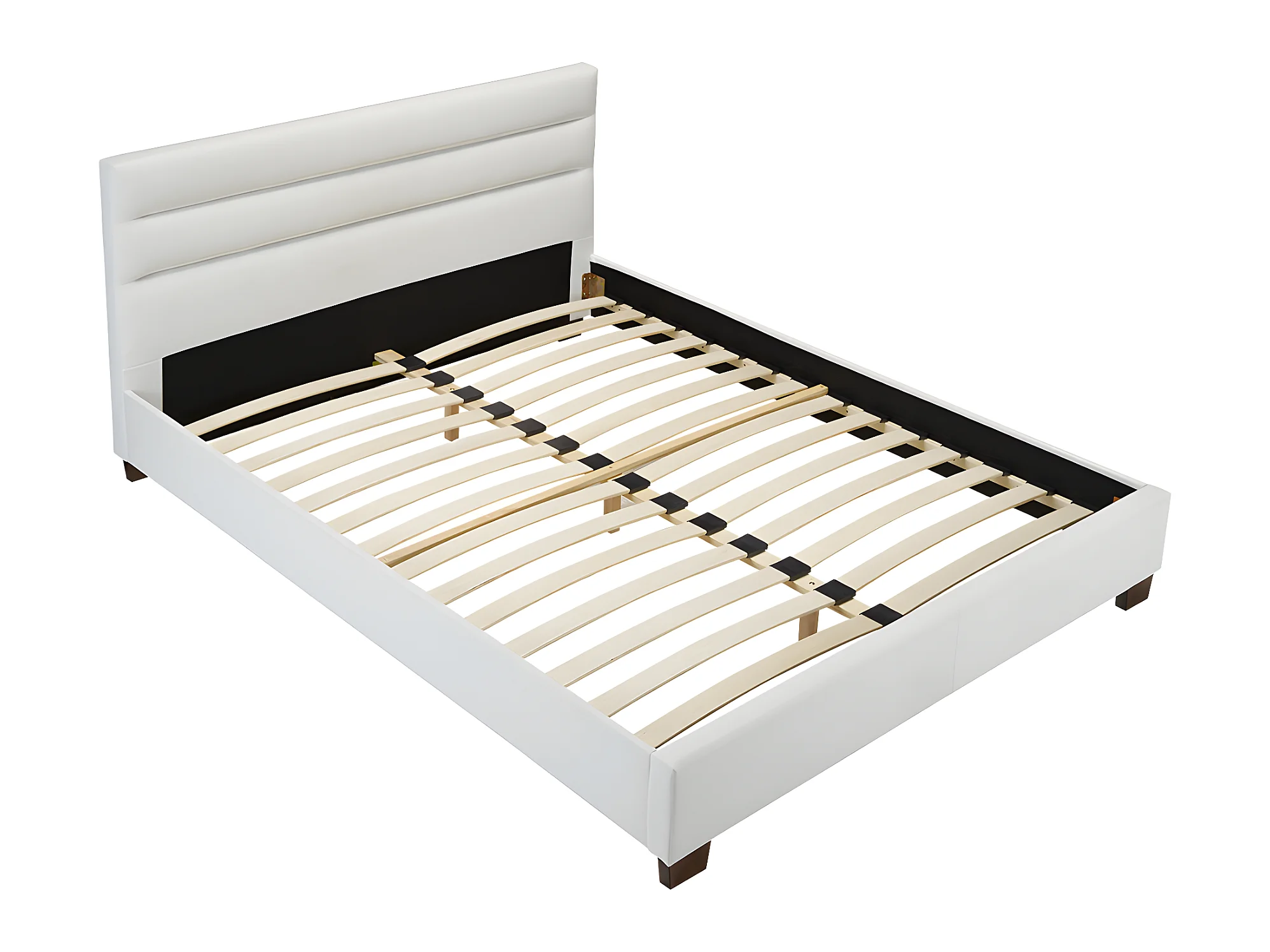 Polsterbett - 140 x 190 cm - Kunstleder - Weiß + Matratze - FAUSTIN