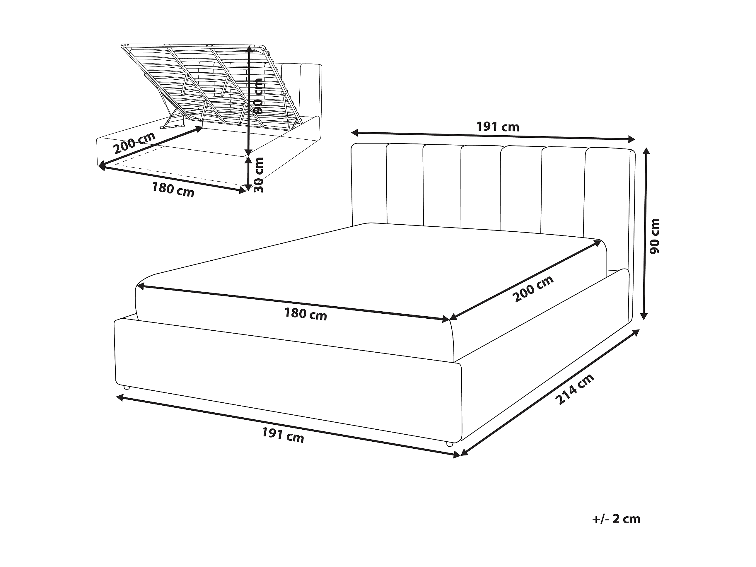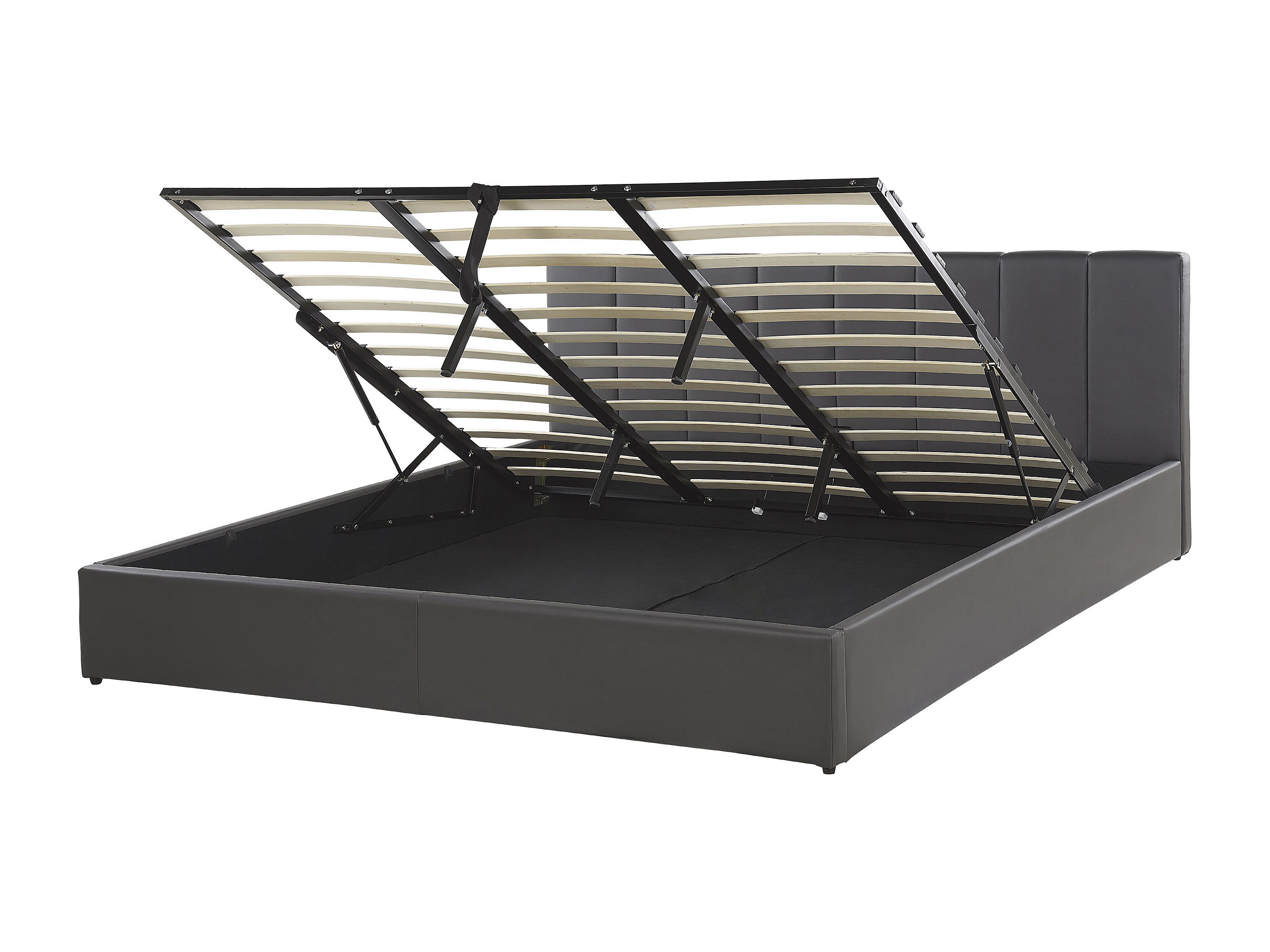 Elegantes Bett Kunstleder mit Bettkasten hochklappbar grau 180 x 200 cm Dreux