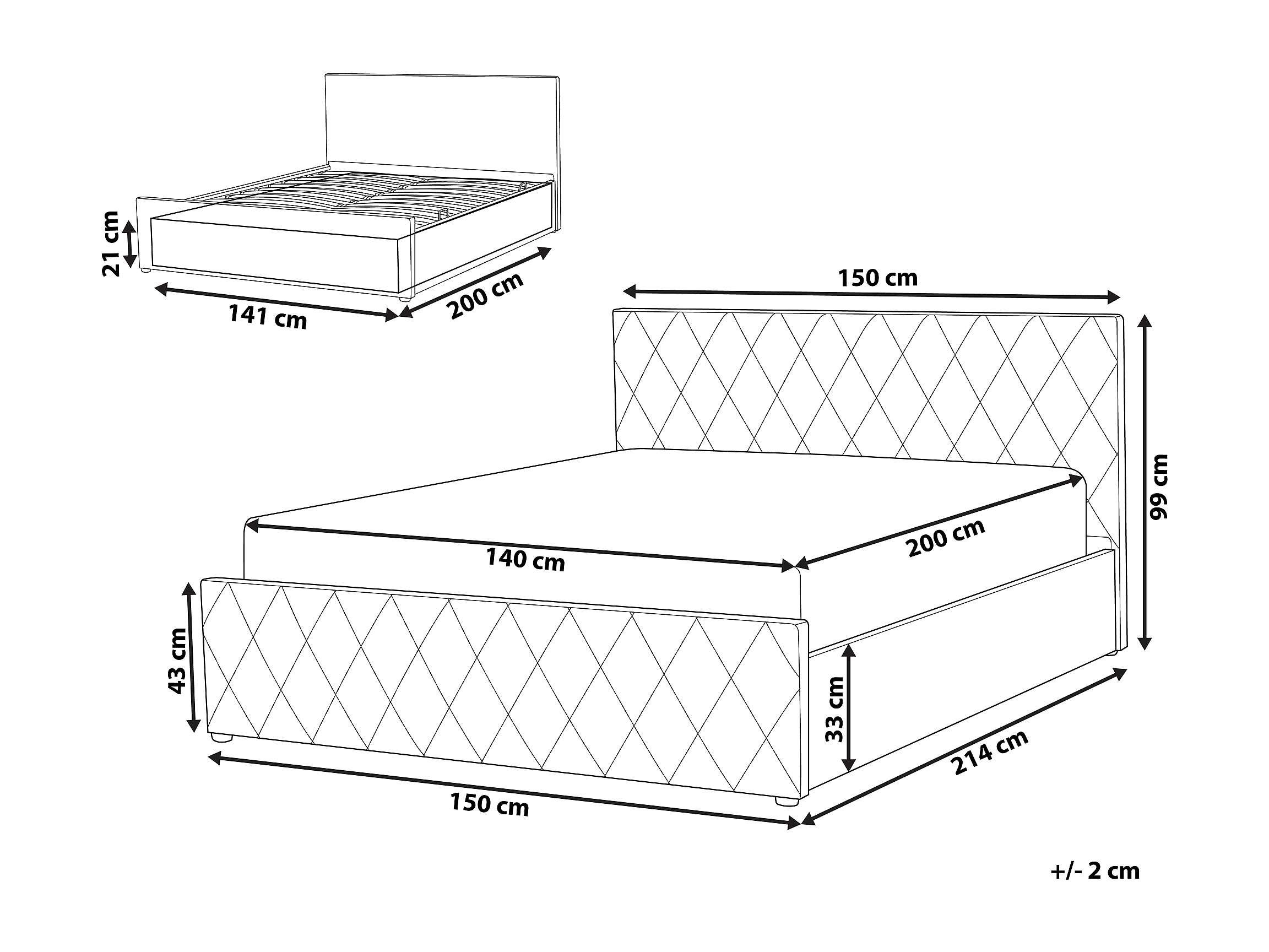 Schickes Doppelbett in Grau mit Bettkasten und Lattenrost 140 x 200 cm Rochefort