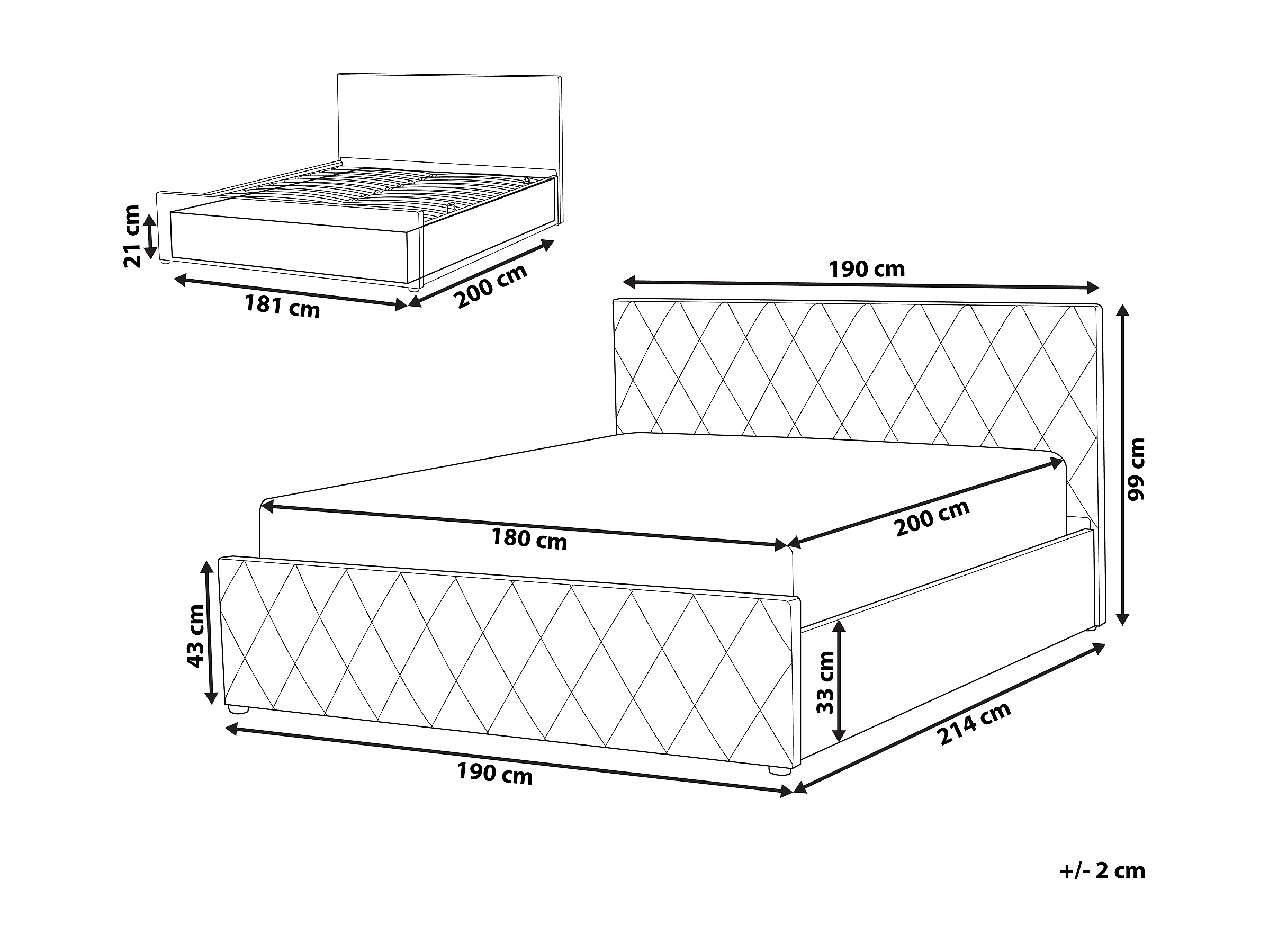 Schickes Doppelbett in Grau mit Bettkasten und Lattenrost 180 x 200 cm Rochefort