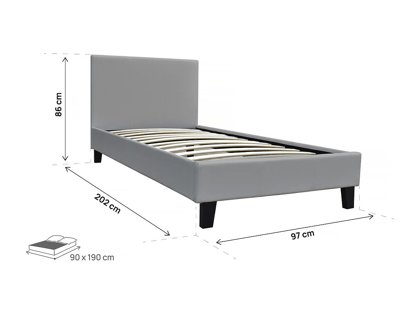 Einzelbett "Lina" - 90 x 190 cm - Hellgrau