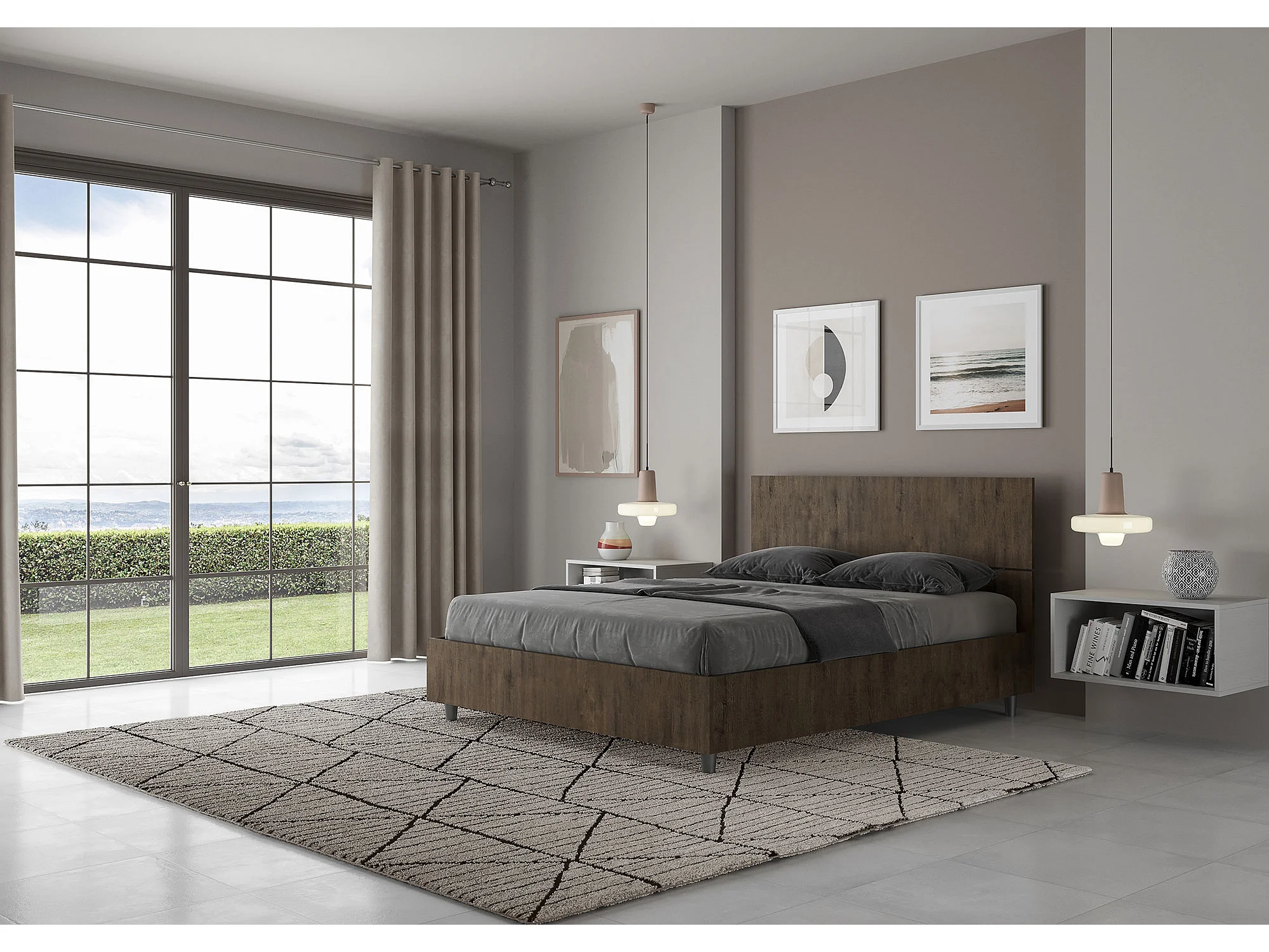 Bett mit Bettkasten 140x190 gerades Kopfteil Nussbaum Demas