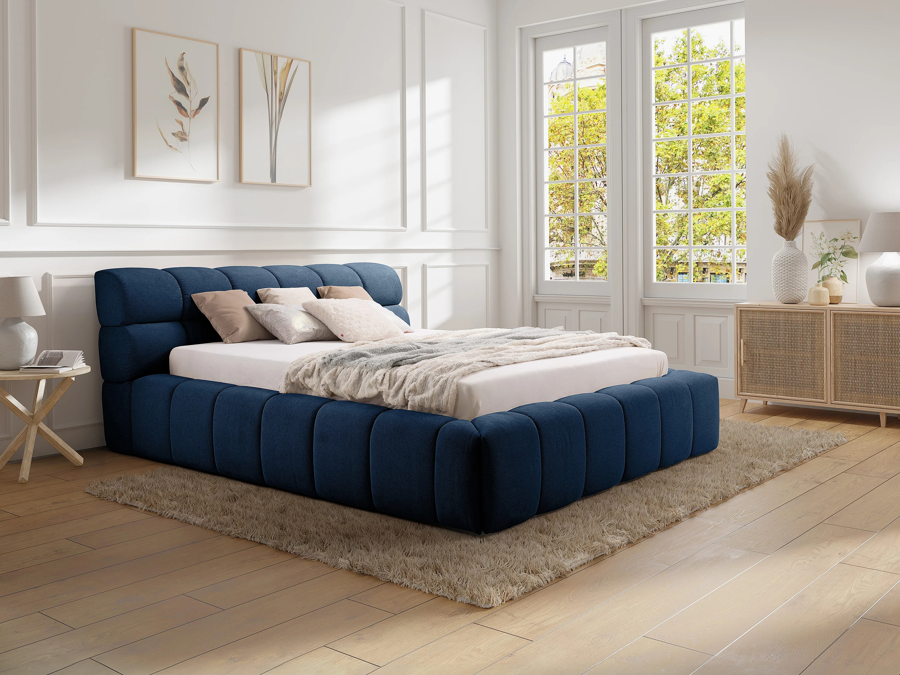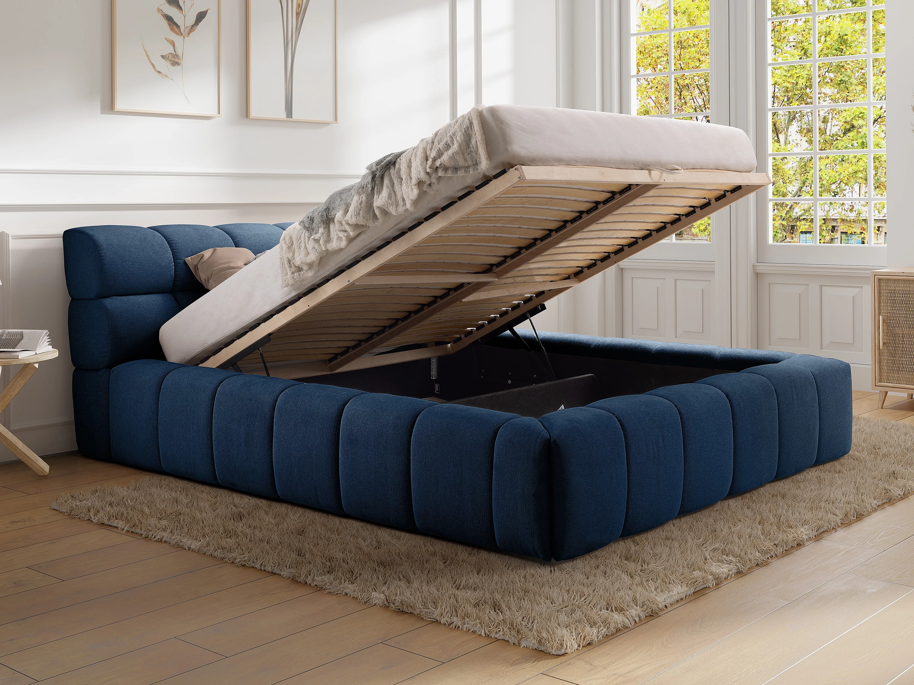 Bett mit Bettkasten - 160 x 200 cm - Stoff - Dunkelblau - FORVIK II von Pascal Morabito