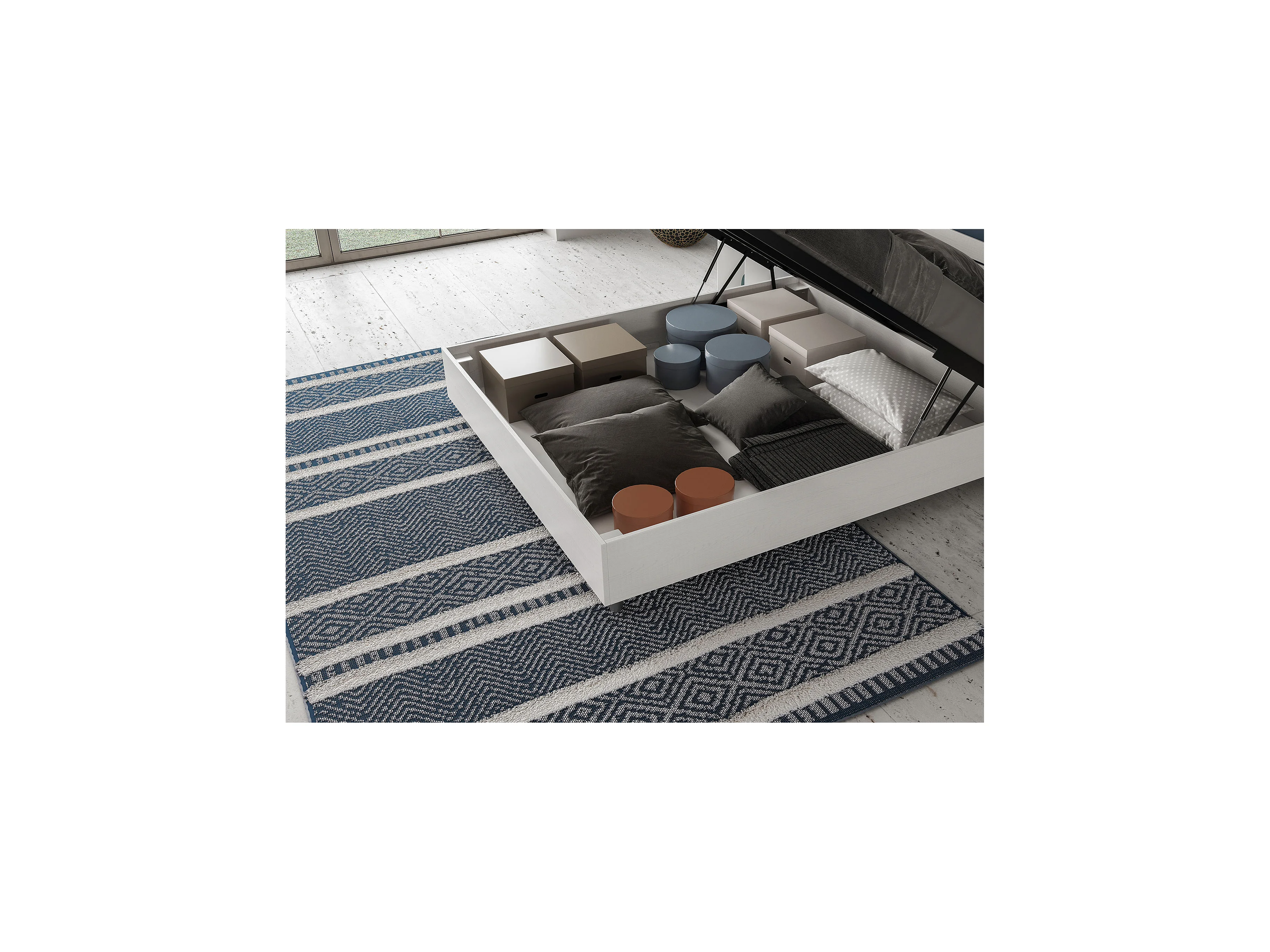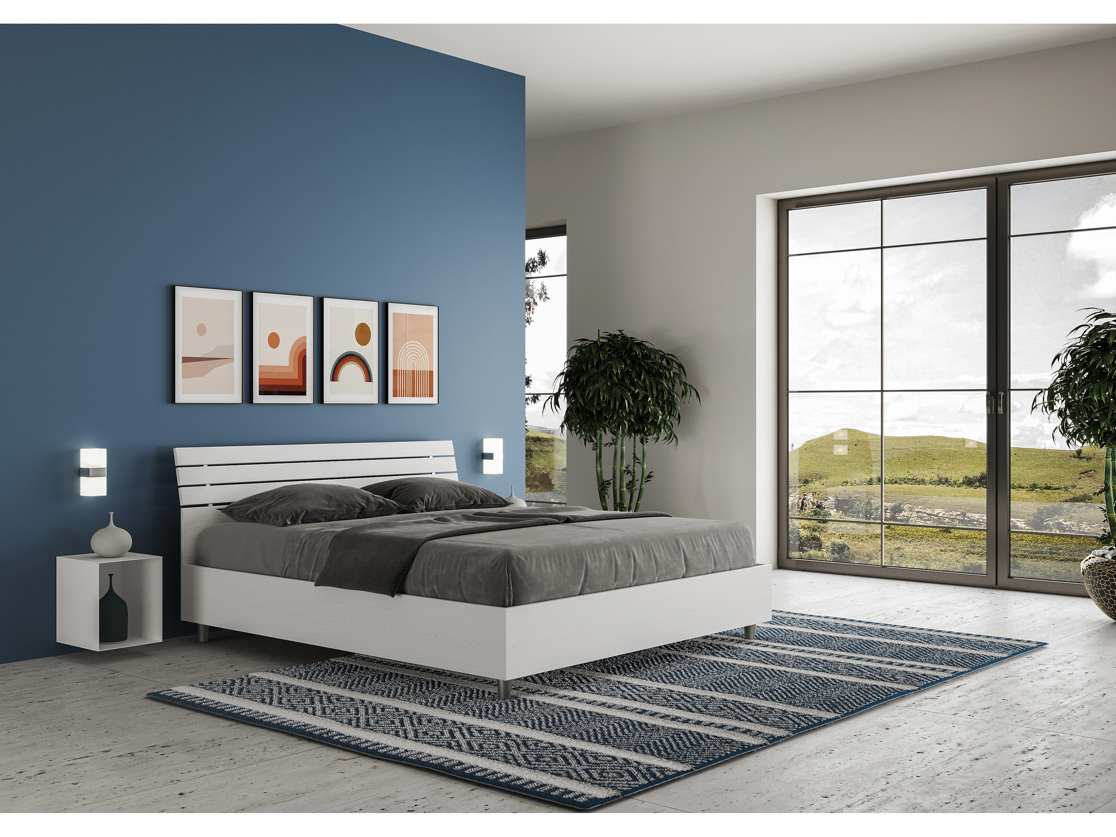 Bett mit Bettkasten 160x190 Esche weiß Kopfteilkissen mit Kunstlederbezug Weiß Egos Antea