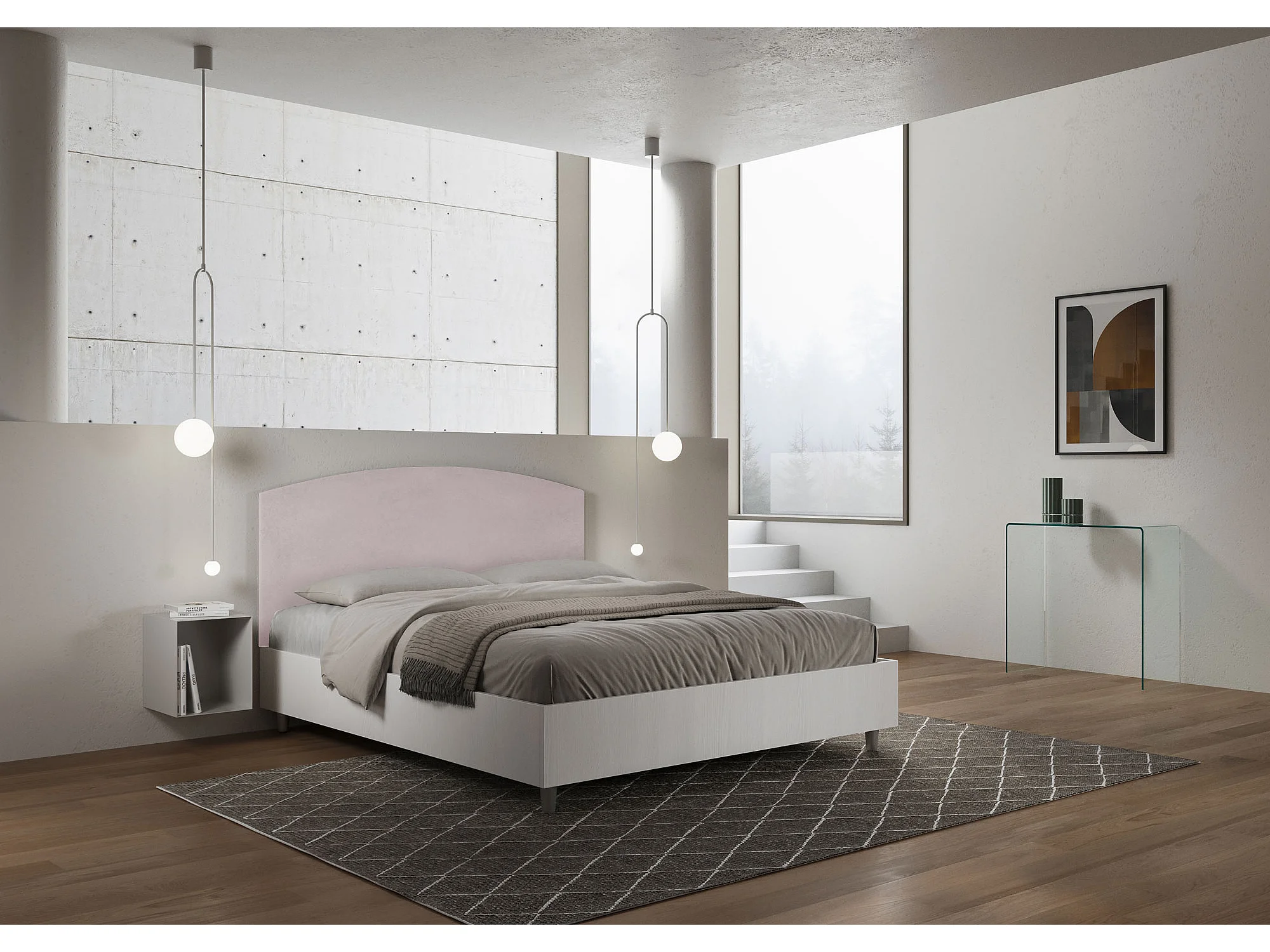 Bett mit Bettkasten 160x200 Bettgestell Esche weiß Bett-Kopfteil mit Mikrofaserbezug Fliederfarbe Antilia