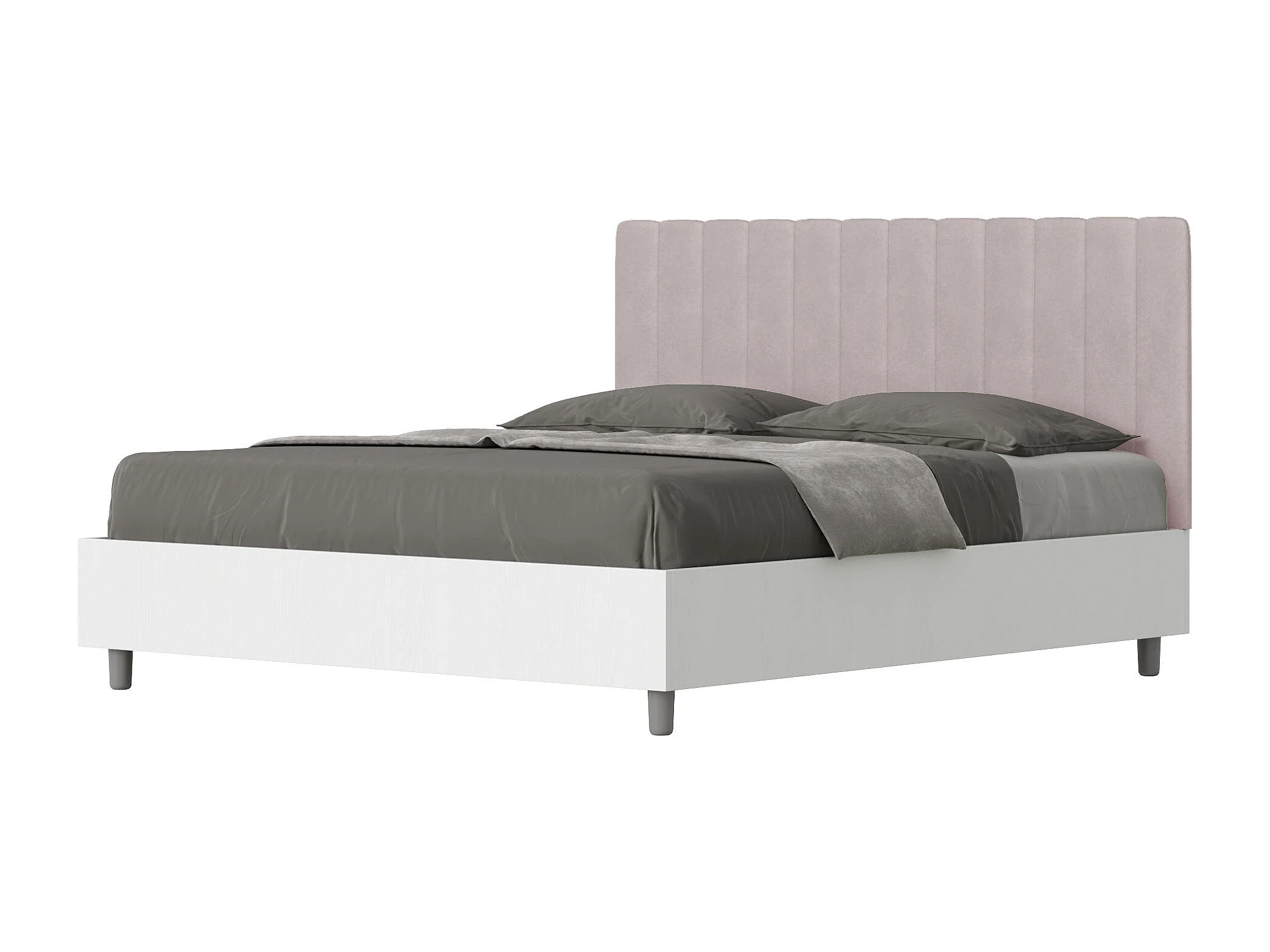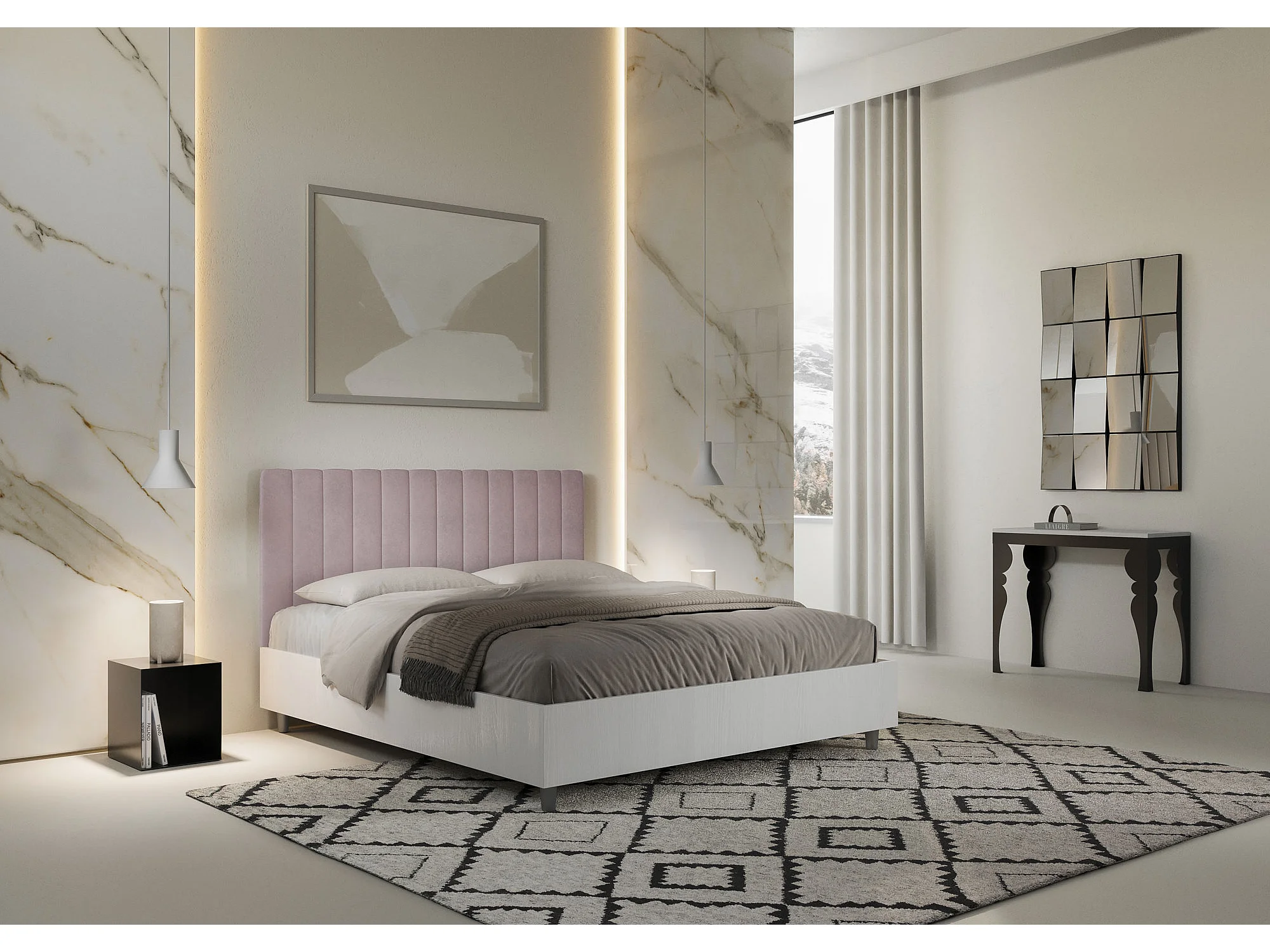 Bett mit Bettkasten 160x200 Bettgestell Esche weiß Bett-Kopfteil mit Mikrofaserbezug Fliederfarbe Kaia