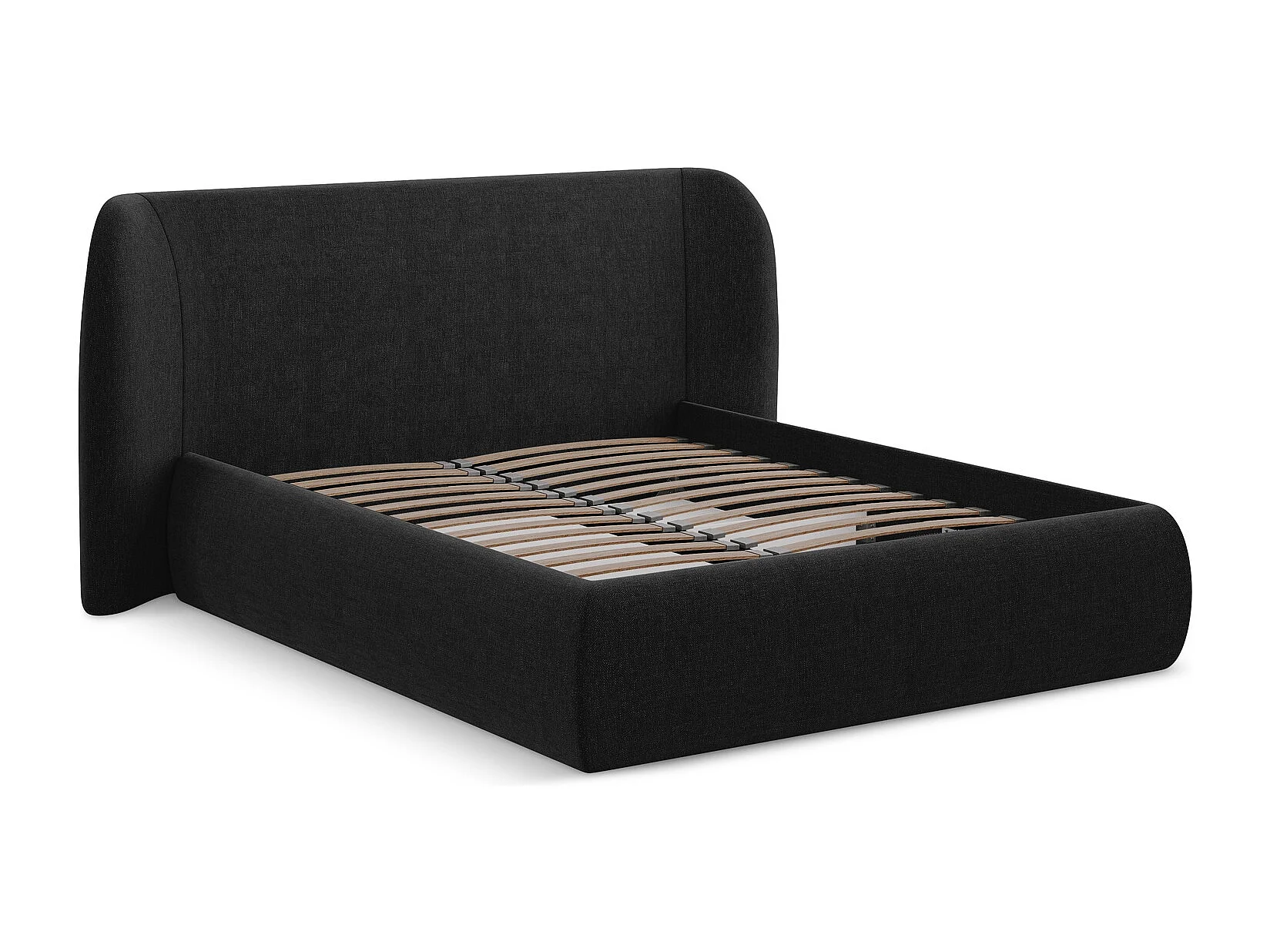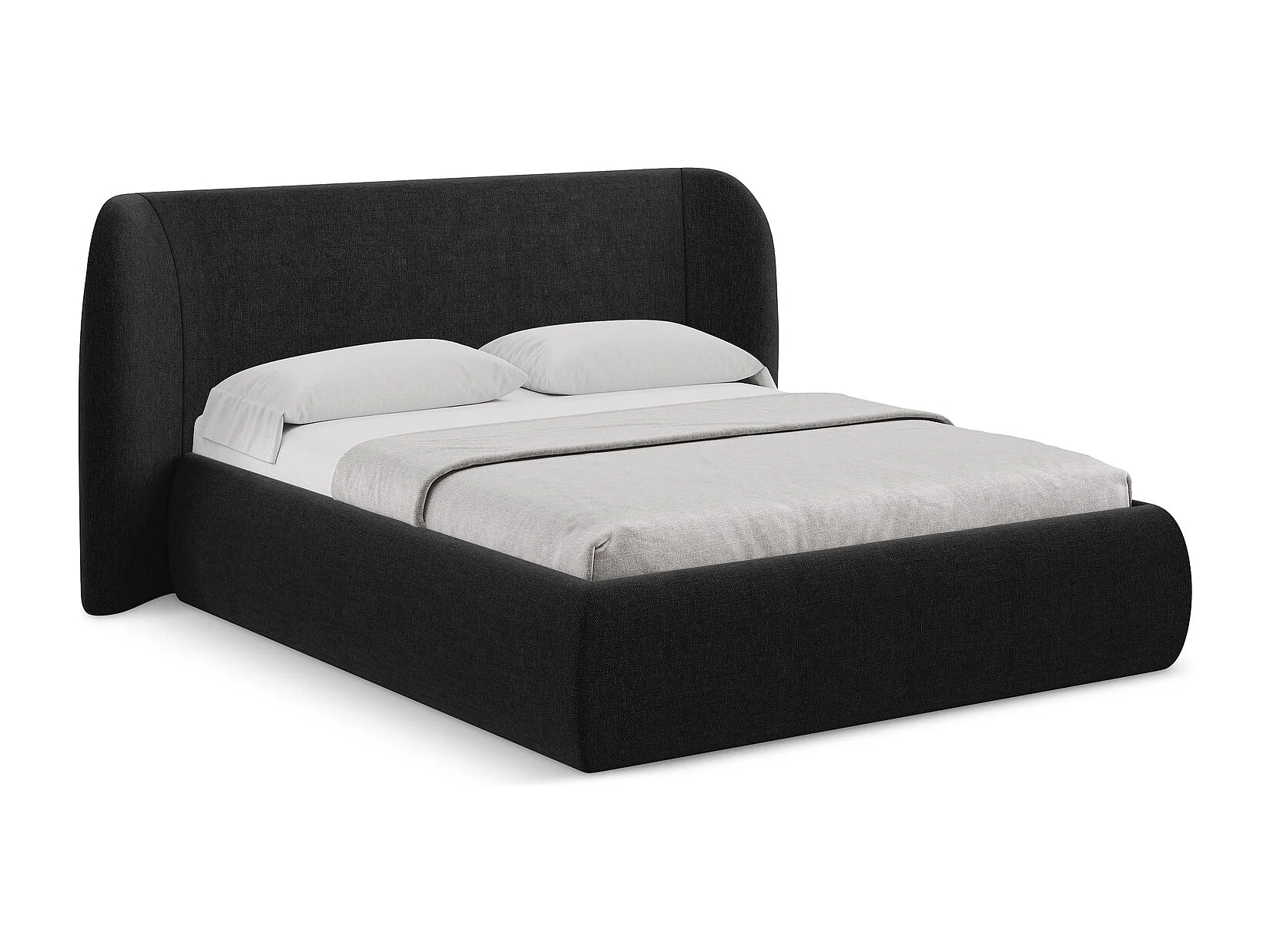 Bett mit Bettkasten - 230 x 215 - Chenille - Schwarz - HAUKE