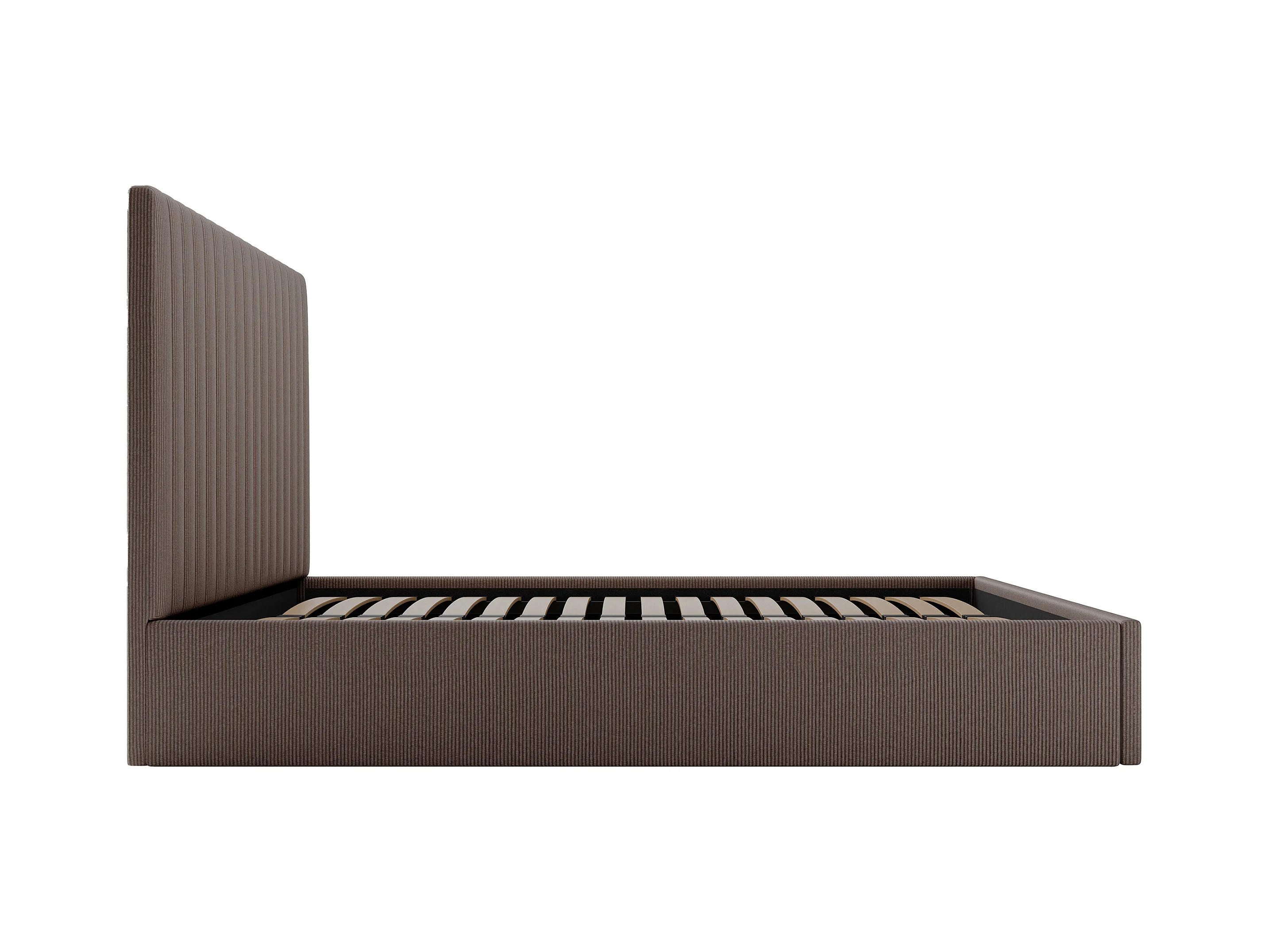 Bett mit Bettkasten - 160 x 200 cm mit Kopfteil mit vertikalen Ziernähten + Matratze - Cord - Taupe - SARAH