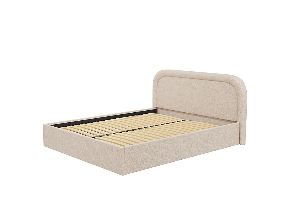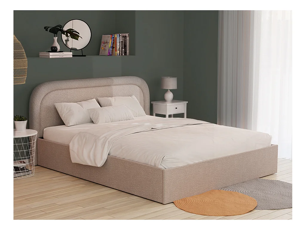 Bett mit Bettkasten + Matratze - 140 x 190 cm - Bouclé-Stoff - Beige - FIREZA
