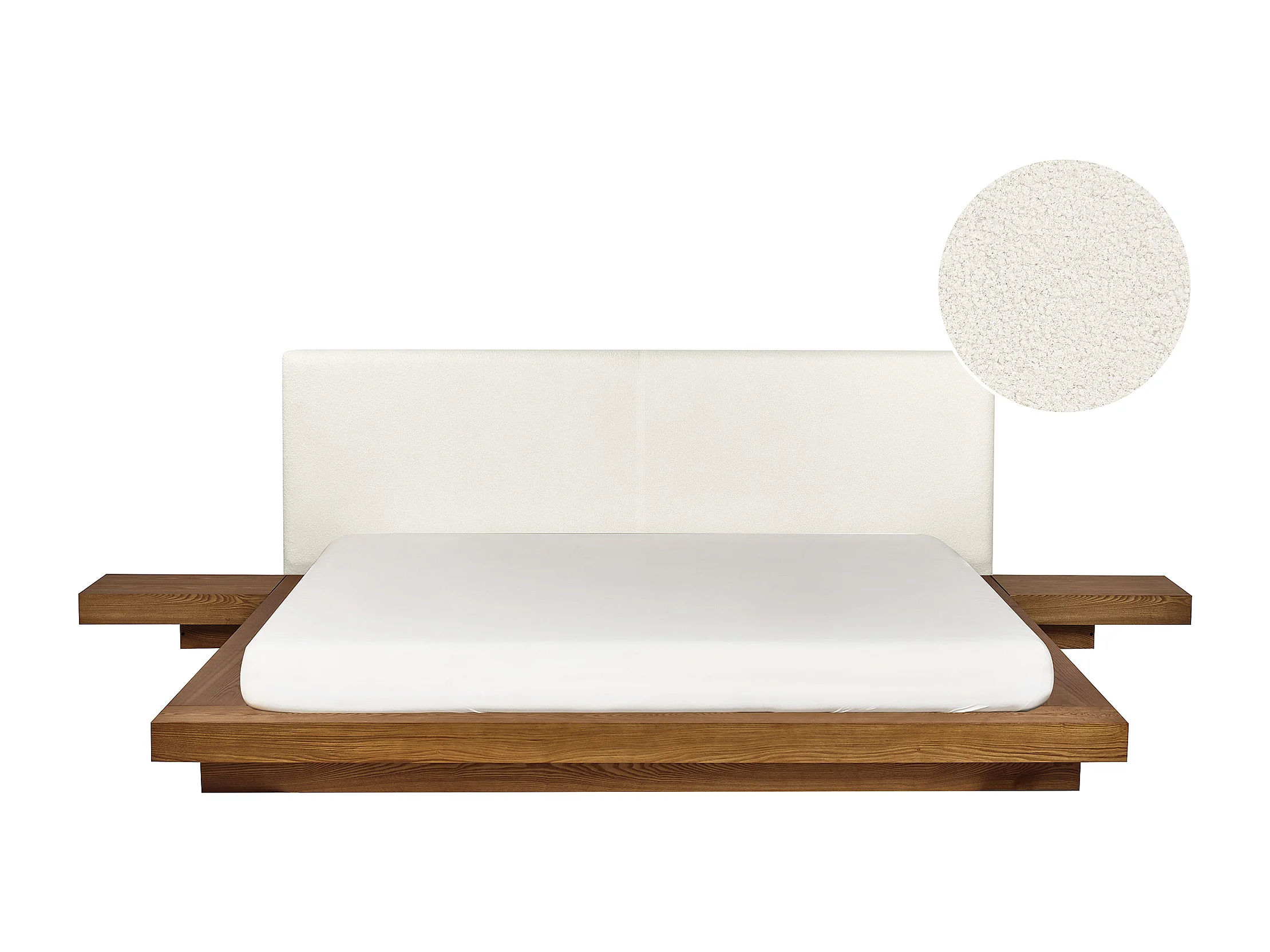 Bett mit LED Bouclé ZEN 180 x 200 cm LED Naturfarbene Esche