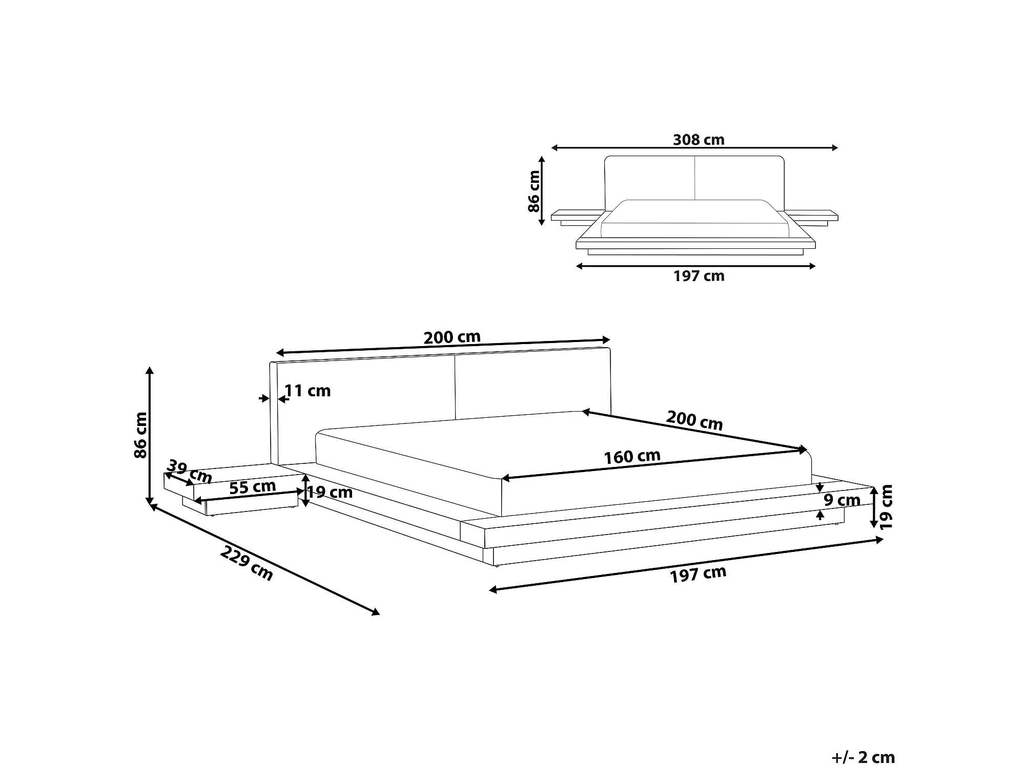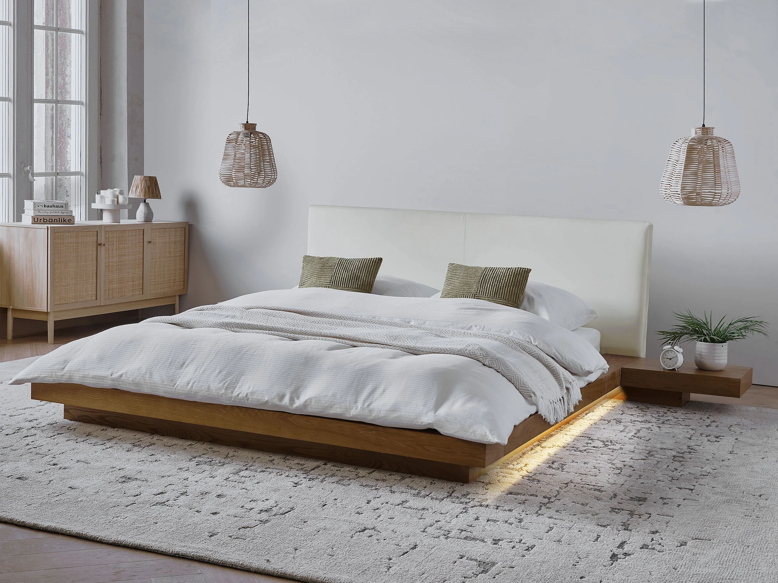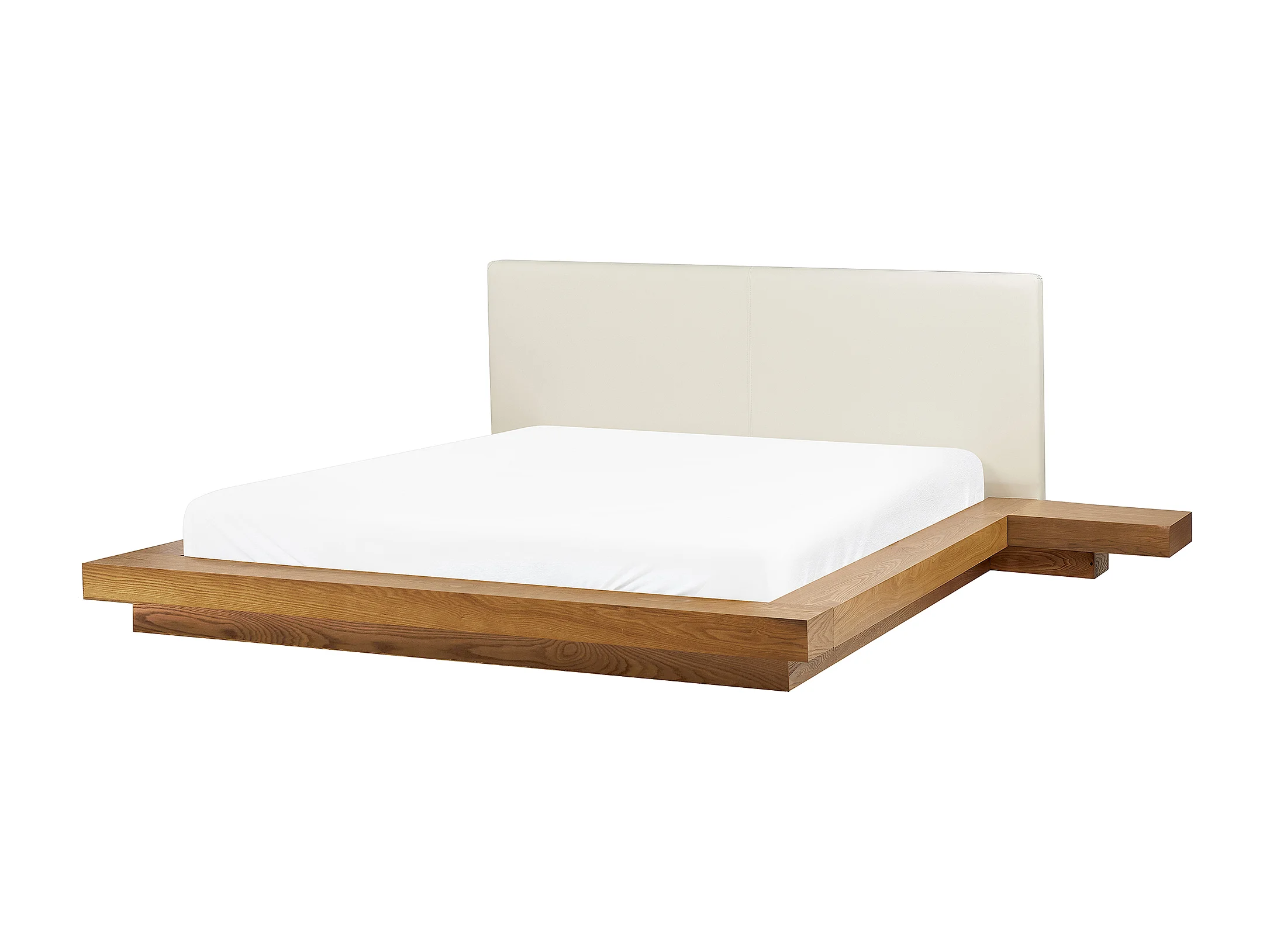 Bett mit LED Kunstleder ZEN 160 x 200 cm Naturfarbene Esche