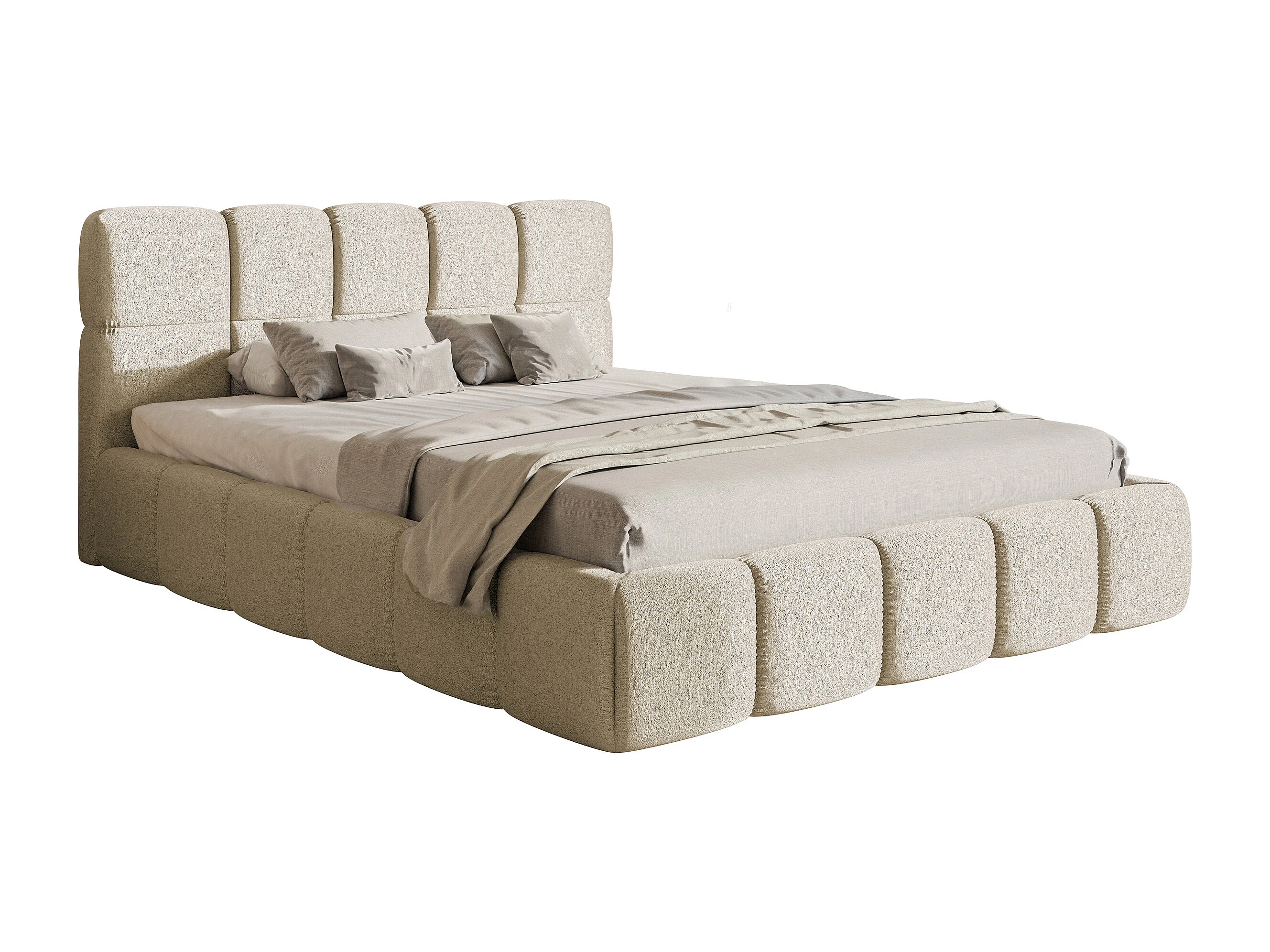 Polsterbett - 160x200 cm - hellbeige hydrophobe Chenille - CLOUDY
