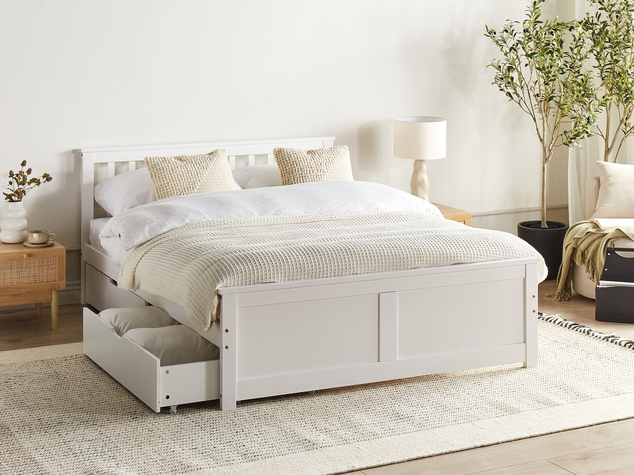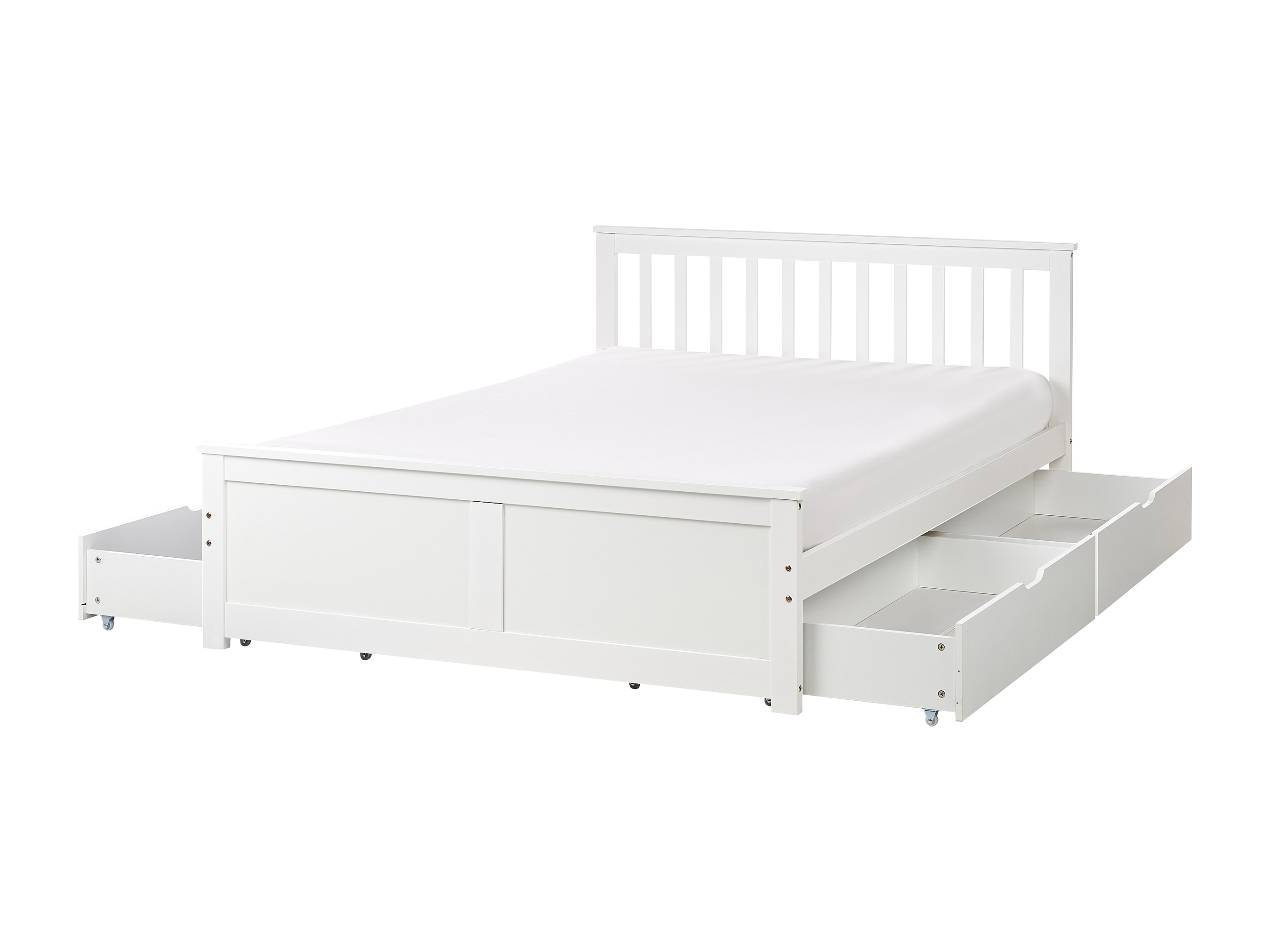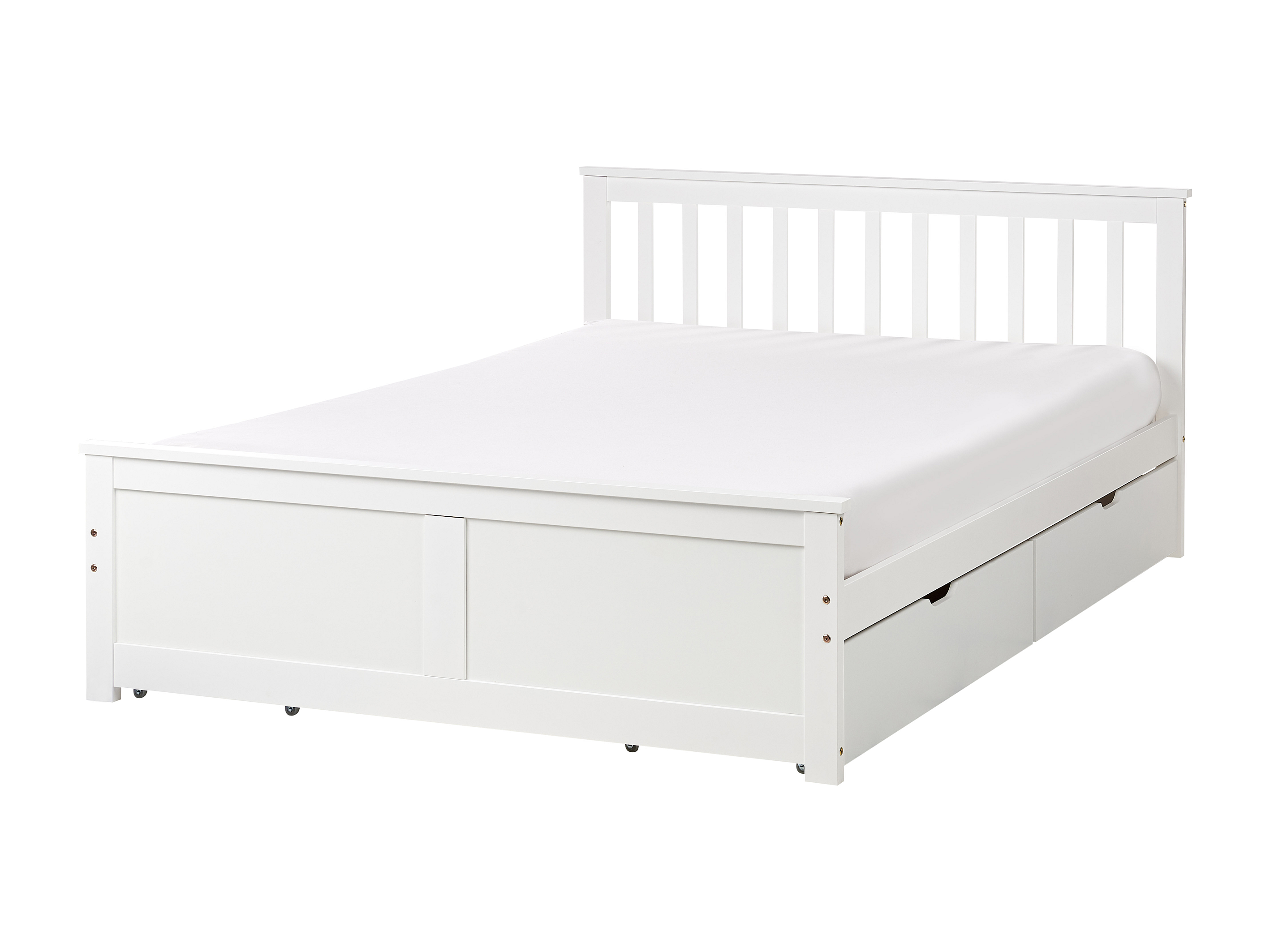 Bett mit Schubladen Kiefernholz OLENDON 140 x 200 cm Weiss