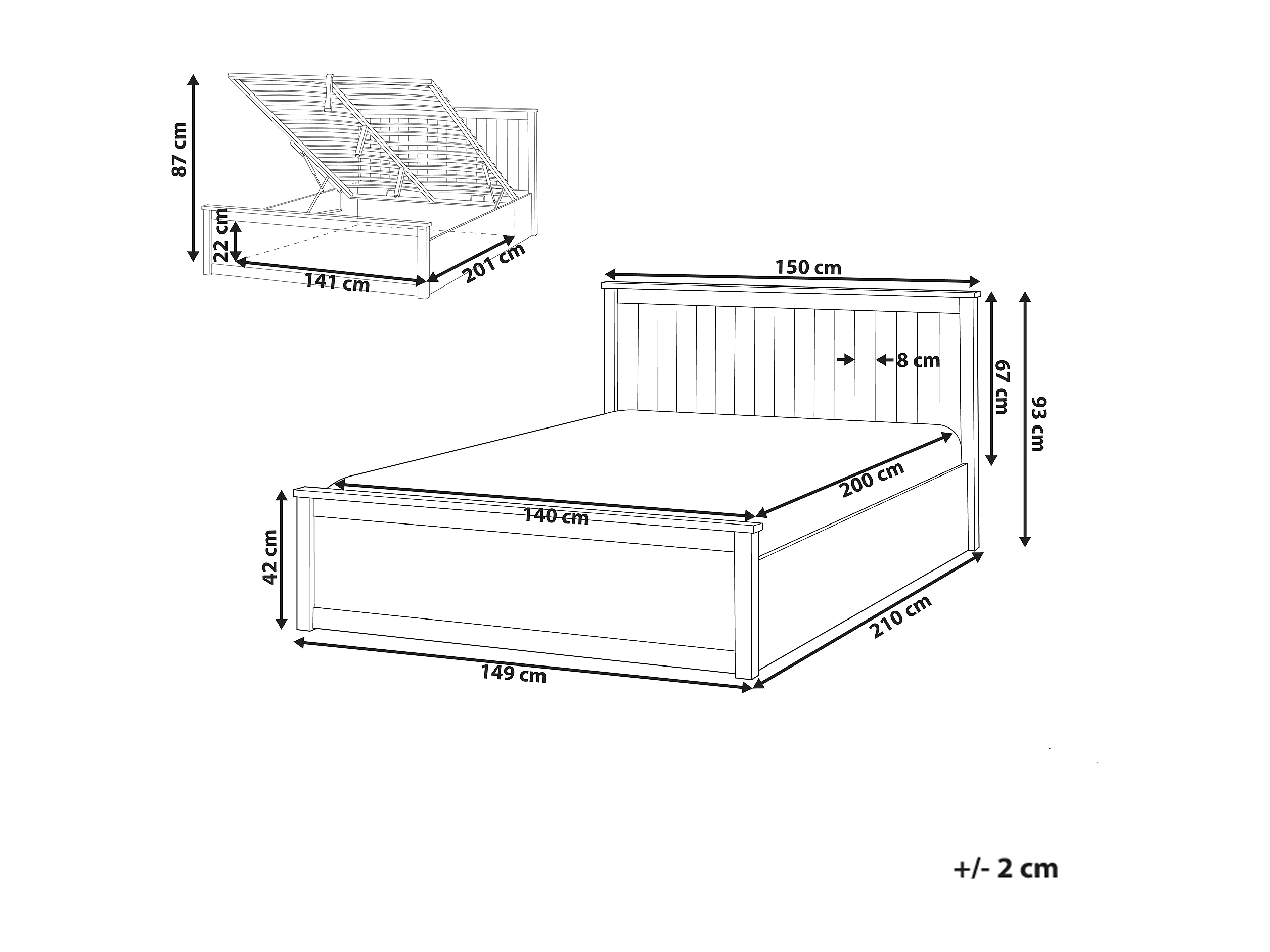 Bett mit Stauraum Kiefernholz LAMBRES 140 x 200 cm Weiss