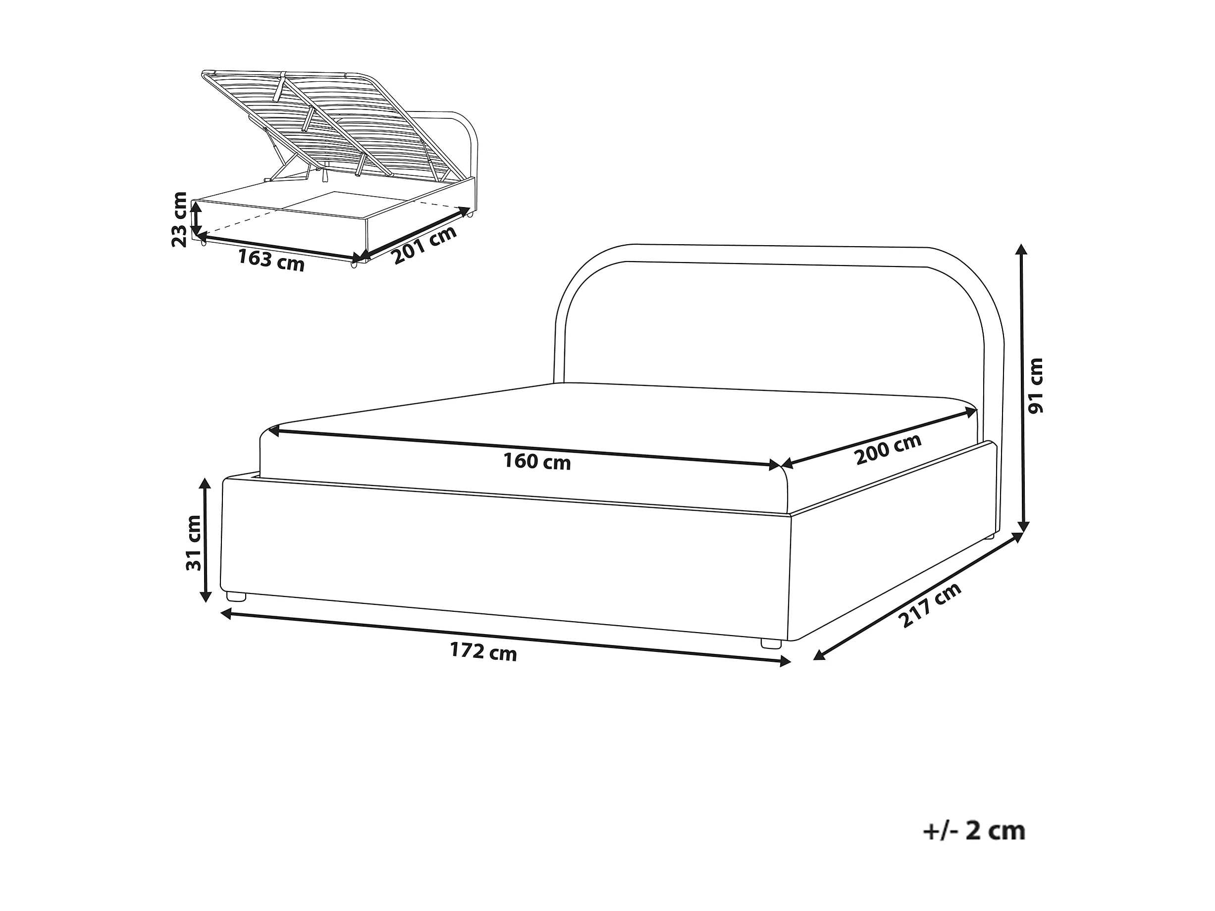 Bett mit Stauraum Stoff QUILLIEN 160 x 200 cm Taupe