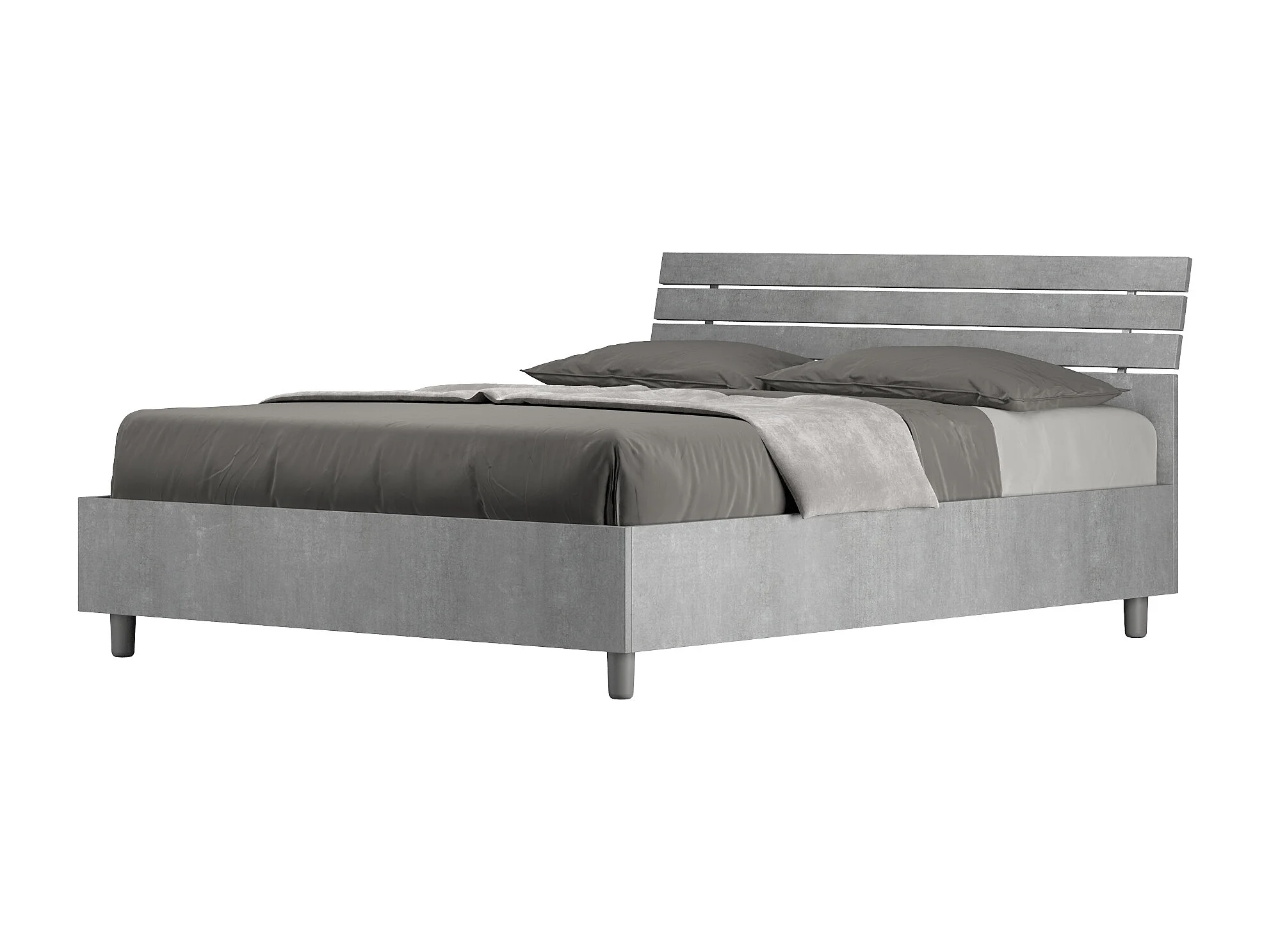 Bett ohne Lattenrost 140x200 schräges Kopfteil mit Holzlatten Zement Ankel