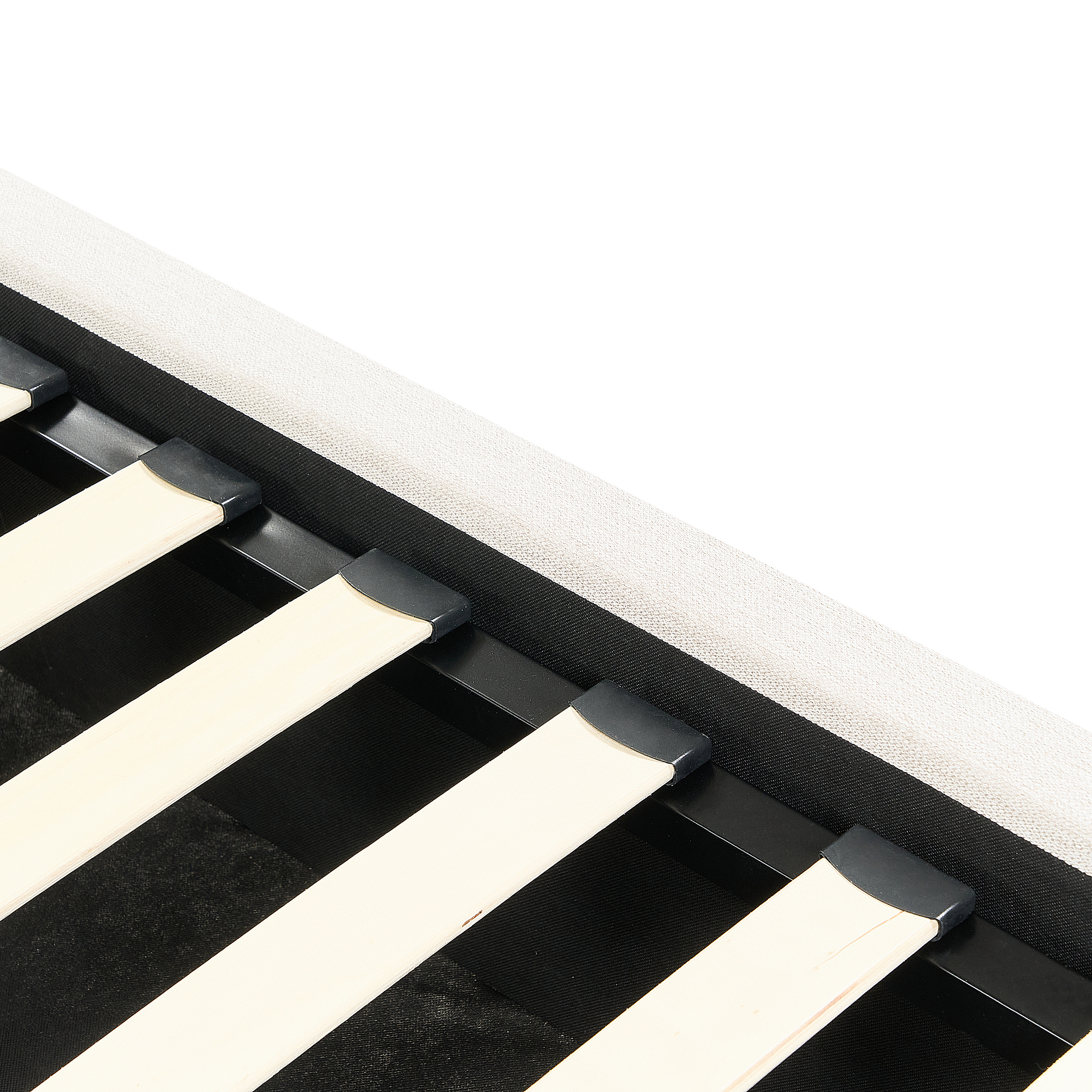 Bett Stoff helles Beige mit Kopfteil Bettkasten Lattenrost 160 x 200 cm Retro Vaucluse