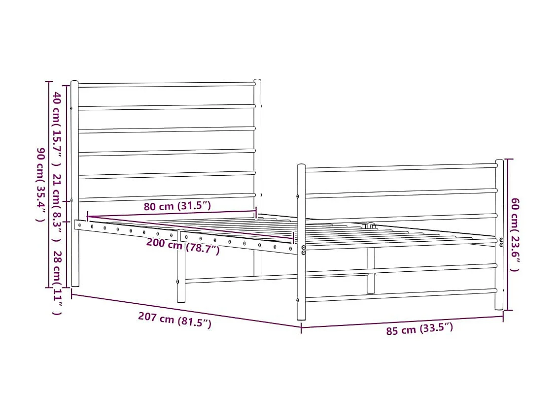 Bettgestell mit Kopf- und Fußteil Metall Schwarz 80x200 cm