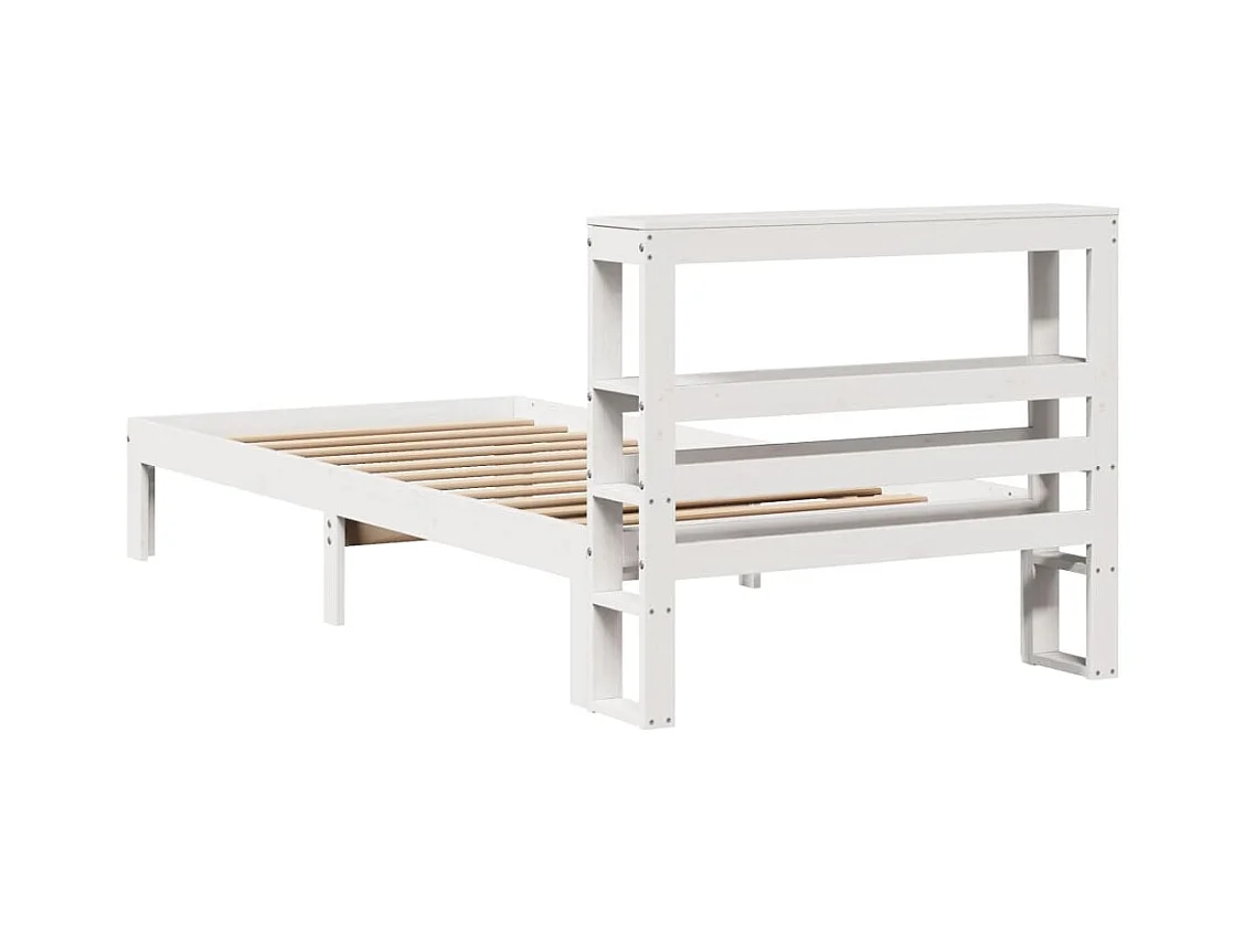 Massivholzbett mit Regal ohne Matratze Weiß 90x190 cm Kiefer