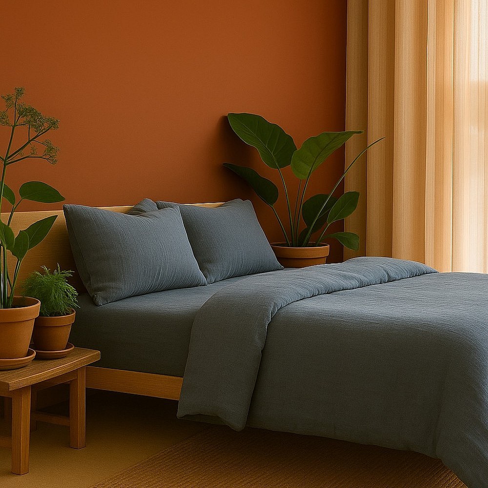 Bettwäsche aus grauer Baumwollgaze 240x260cm Oeko-tex - Bequem und Langlebig