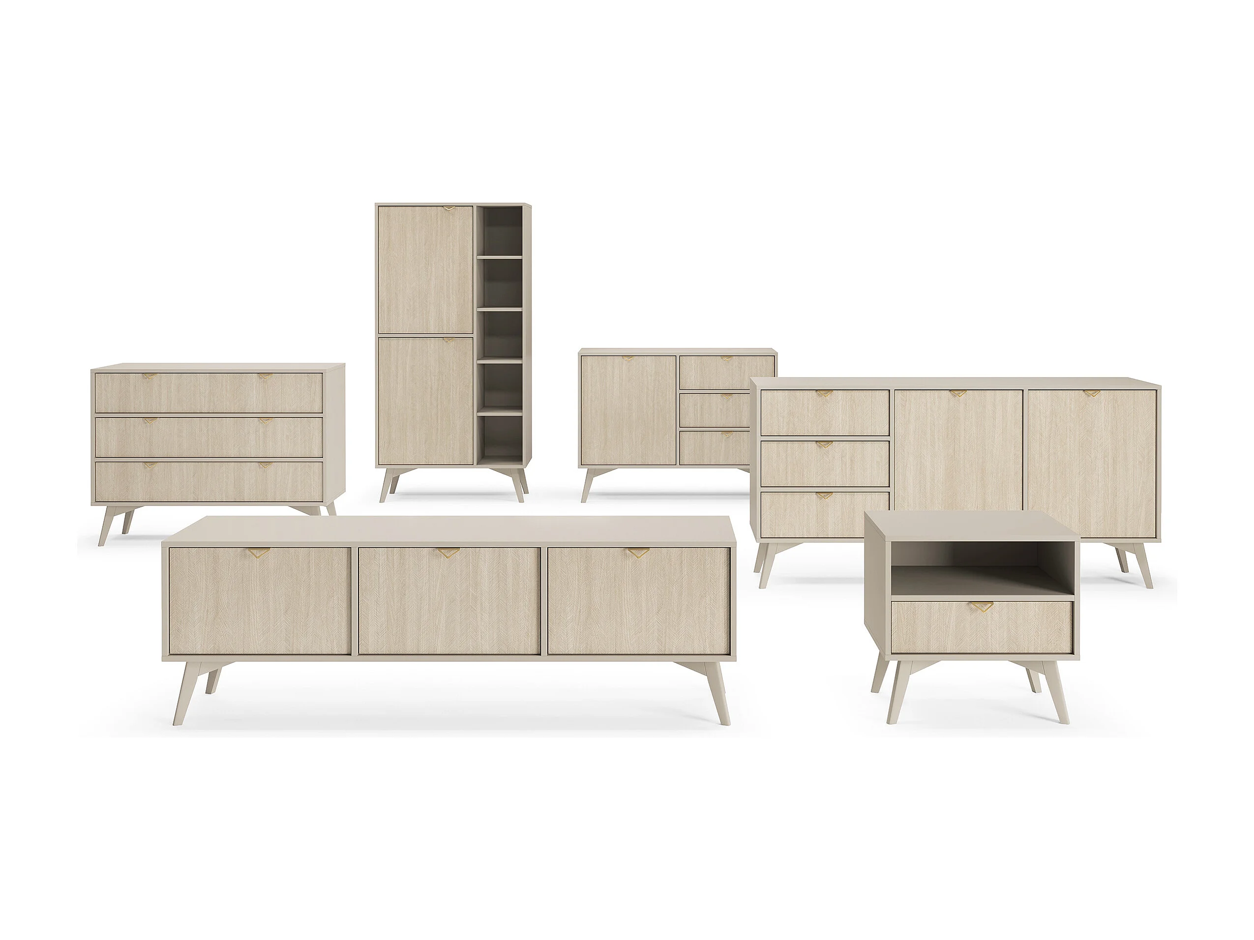 Bibliothèque : Beige sable/ Chevrons scandi, Pieds Bois, 80 x 160 x 38cm