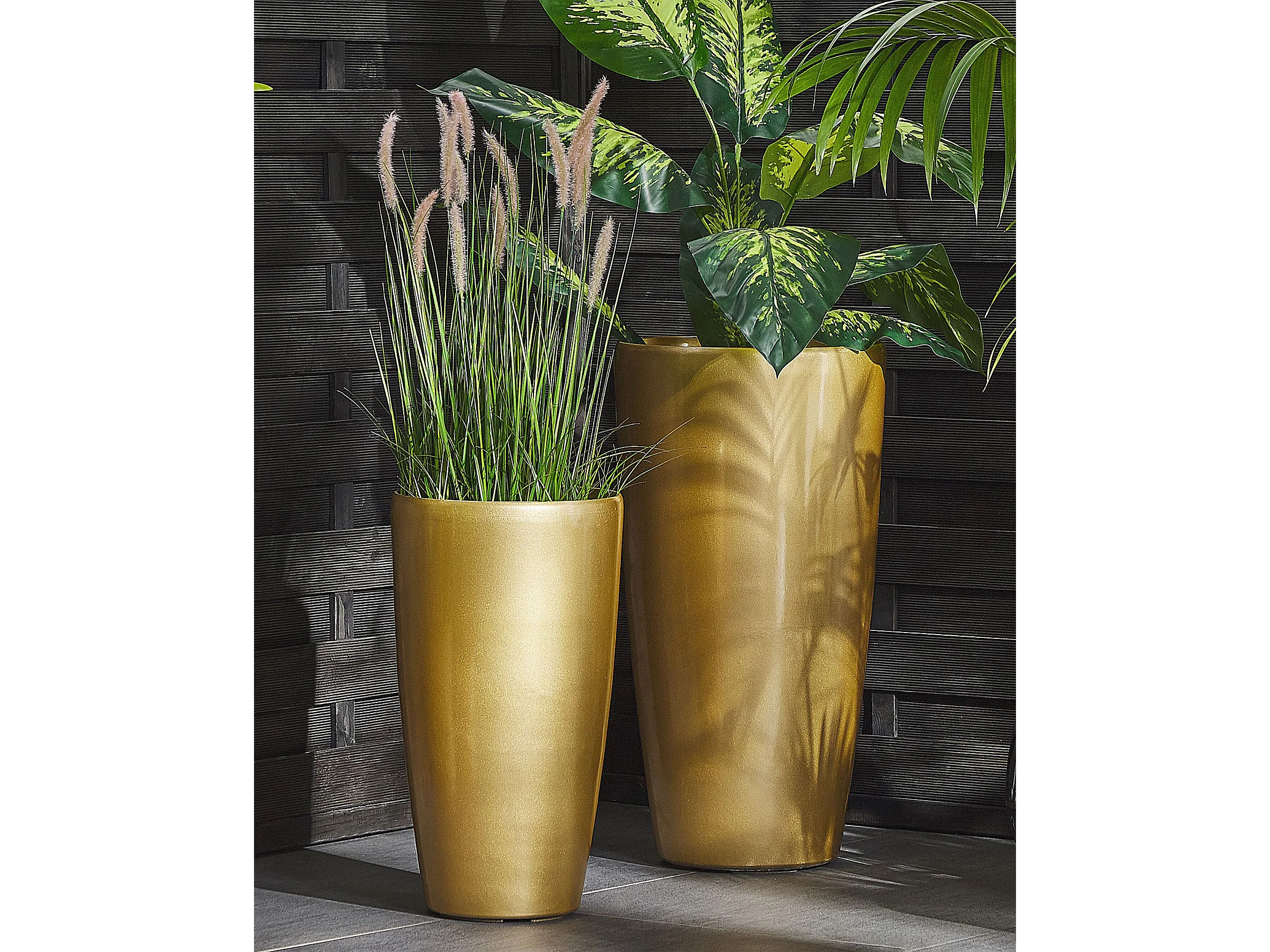 Blumentopf aus Steingemisch gold 40x40x75 cm rund moderner Look Tseria
