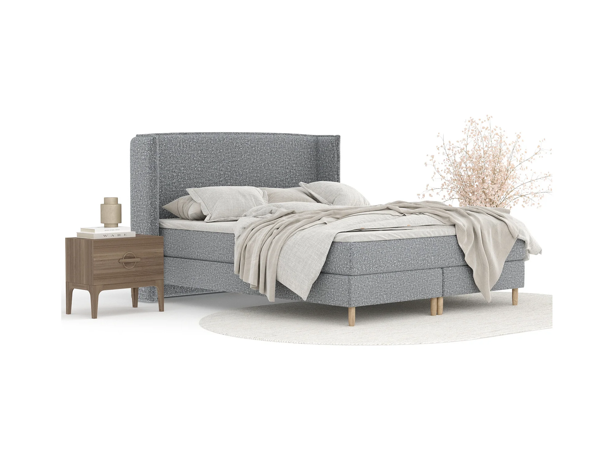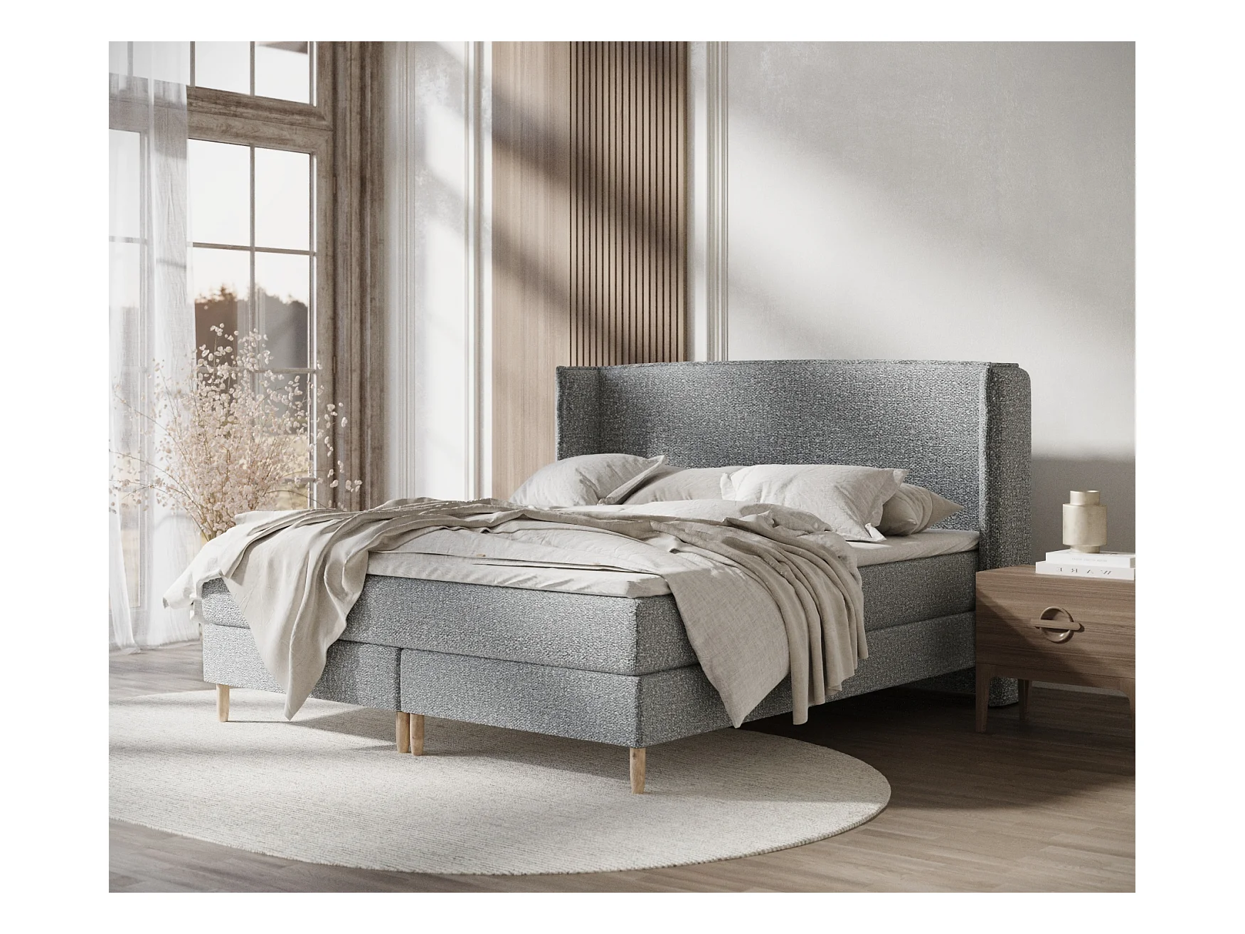 Boxspringbett aus Webstoff Ardis - Matratze - Toppermatratze - 140x200 cm - grau