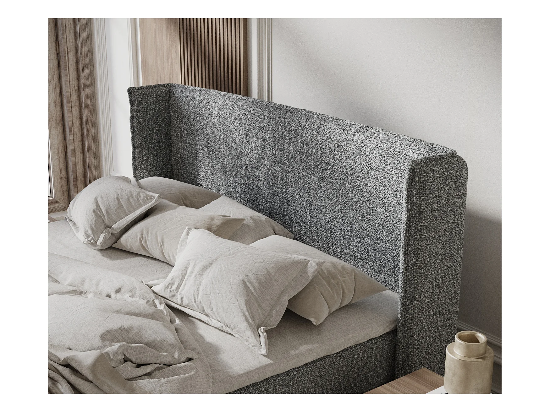 Boxspringbett aus Boucle-Stoff Ardis - Matratze - Toppermatratze - 140x200 cm - grau