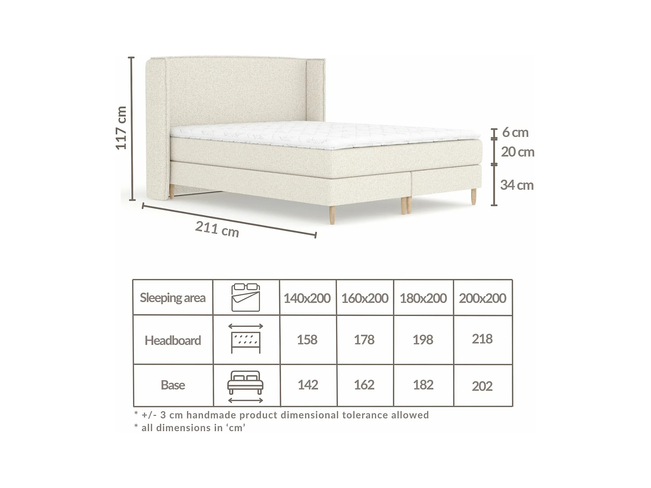 Boxspringbett aus Webstoff Passion - Matratze - Toppermatratze - 140x200 cm - grau