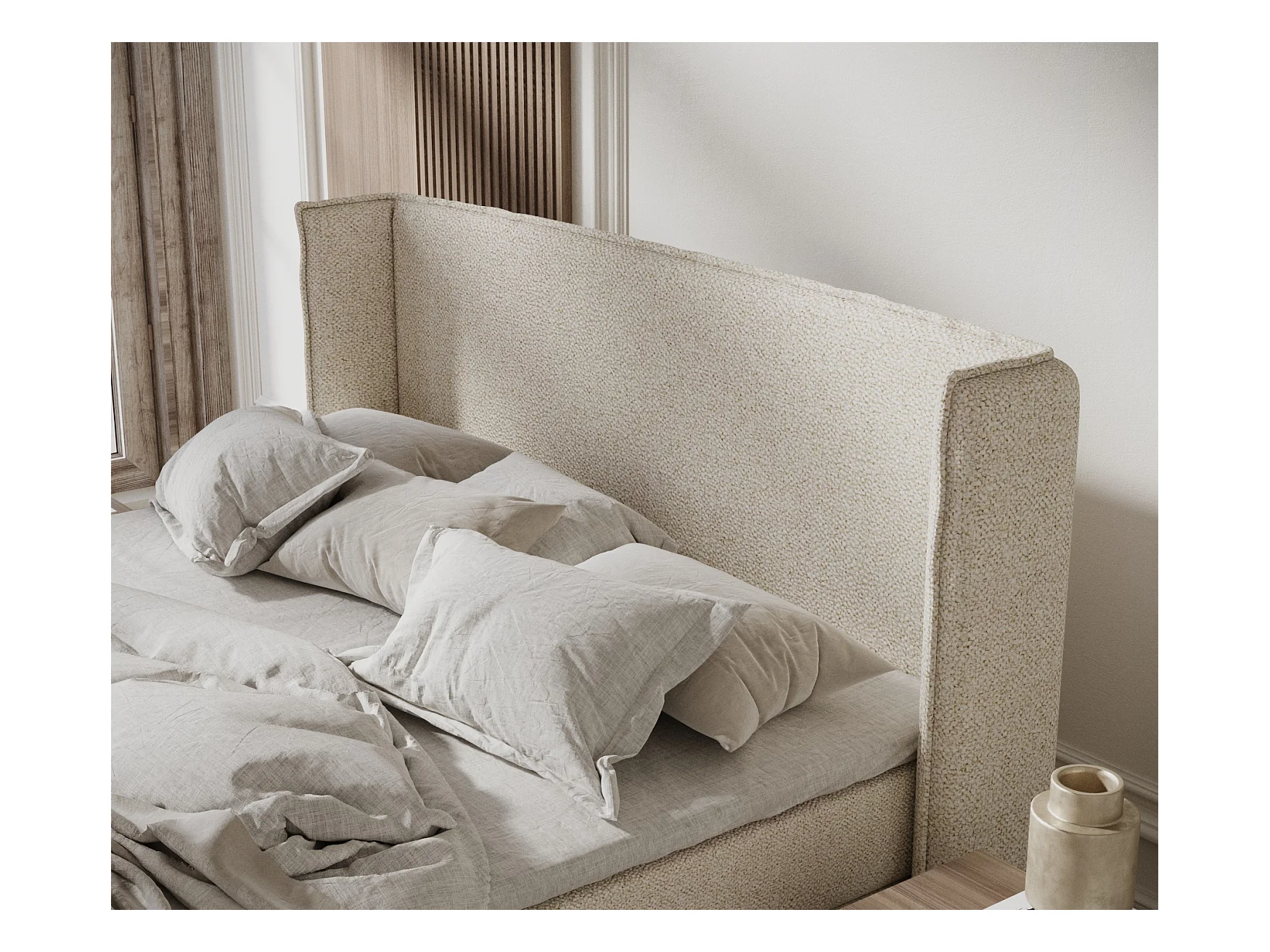 Boxspringbett aus Boucle-Stoff Ardis - Matratze - Toppermatratze - 160x200 cm - creme