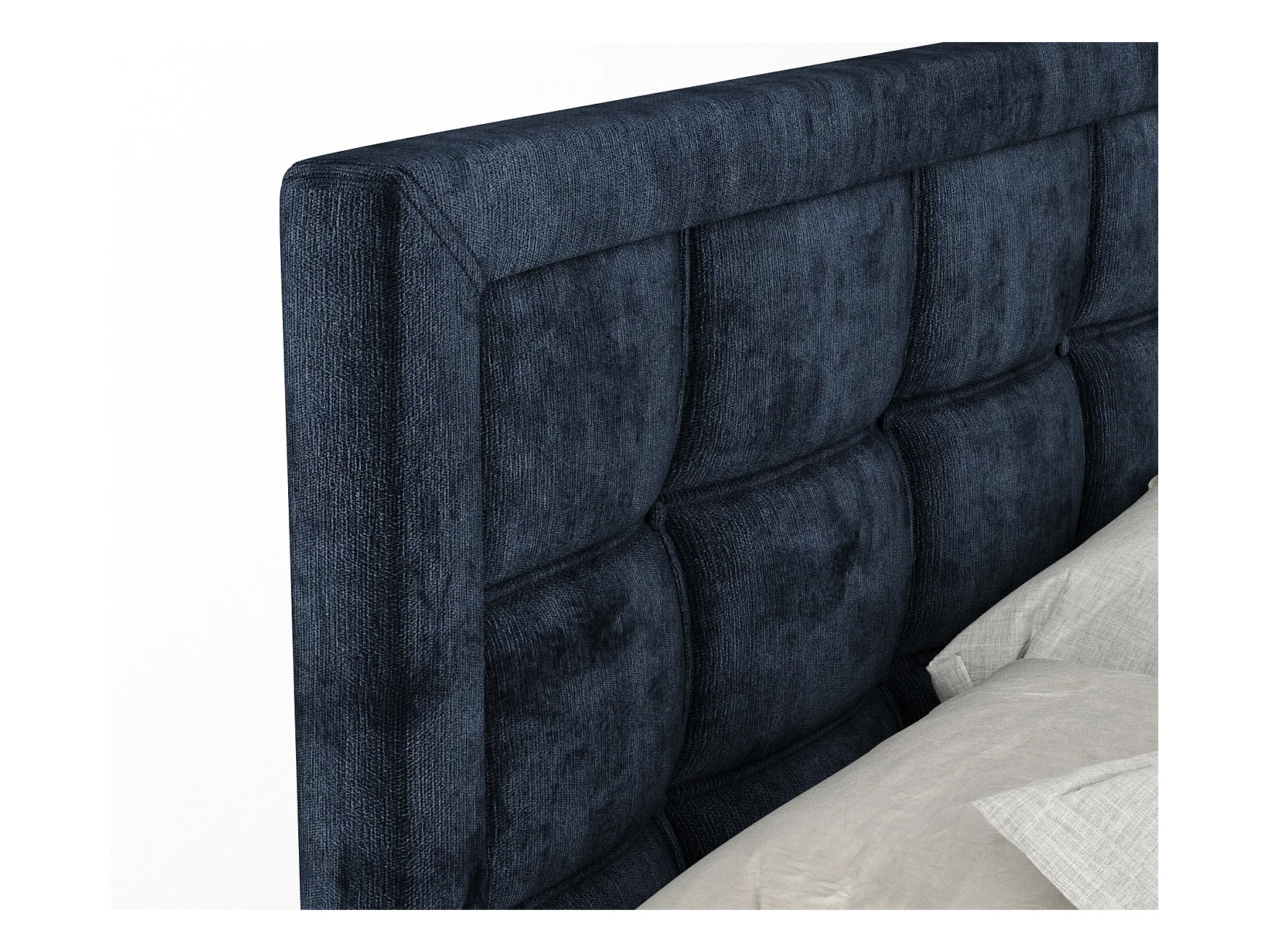 Boxspringbett aus Chenille-Stoff Ava - Matratze - Toppermatratze - 140x200 cm - marineblau