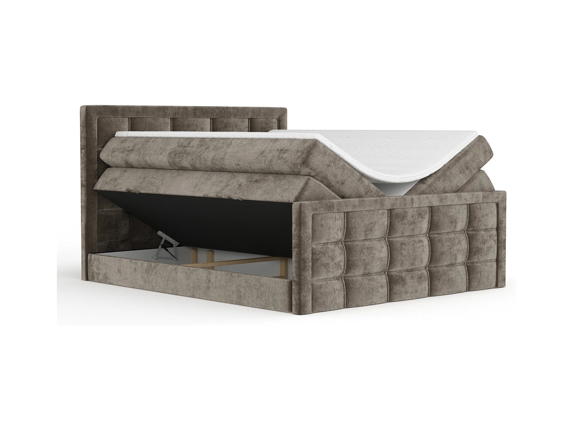 Boxspringbett aus Chenille-Stoff Ava - Matratze - Toppermatratze - 180x200 cm - braun