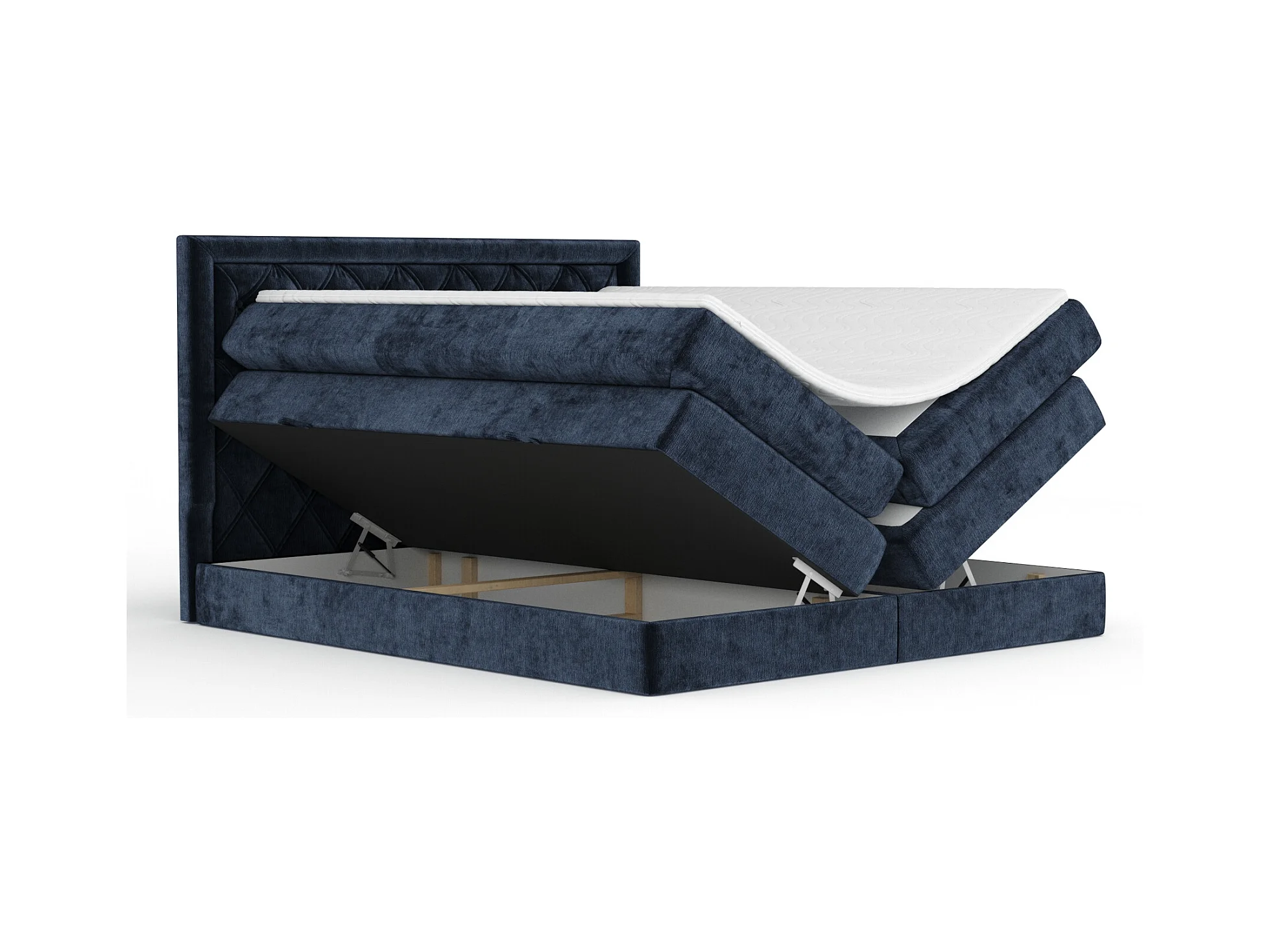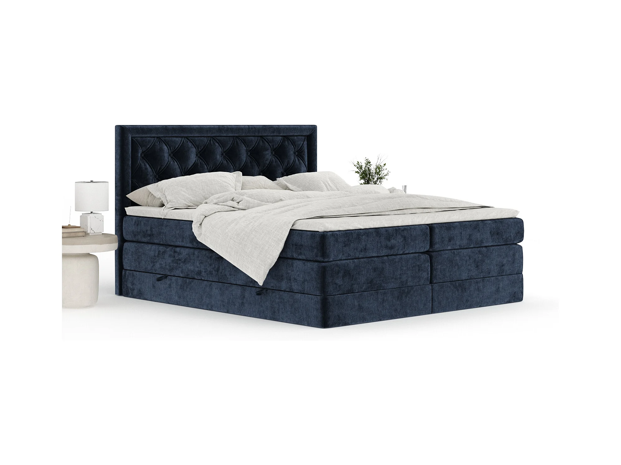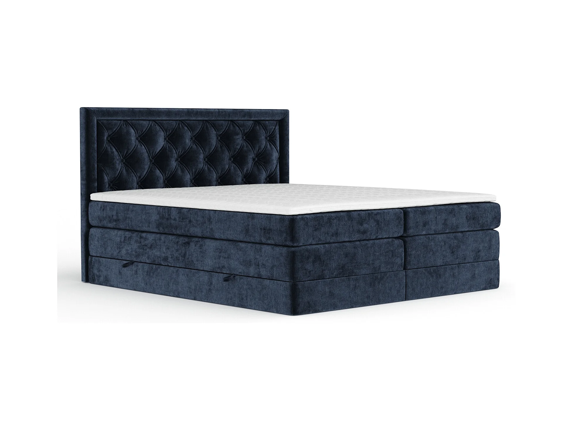 Boxspringbett aus Chenille-Stoff Juniper - Matratze - Toppermatratze - 160x200 cm - marineblau