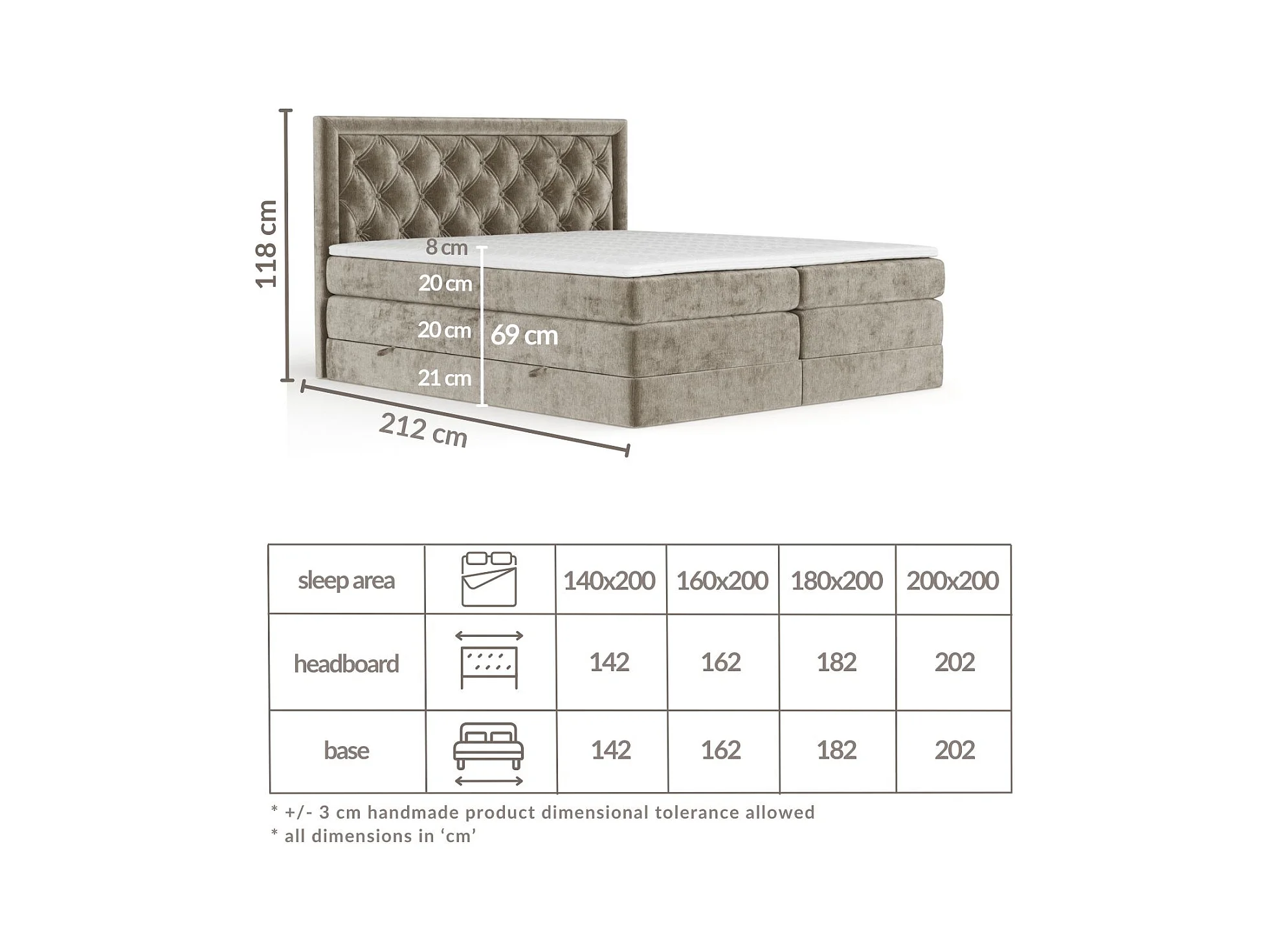Boxspringbett aus Chenille-Stoff Ava - Matratze - Toppermatratze - 160x200 cm - blau