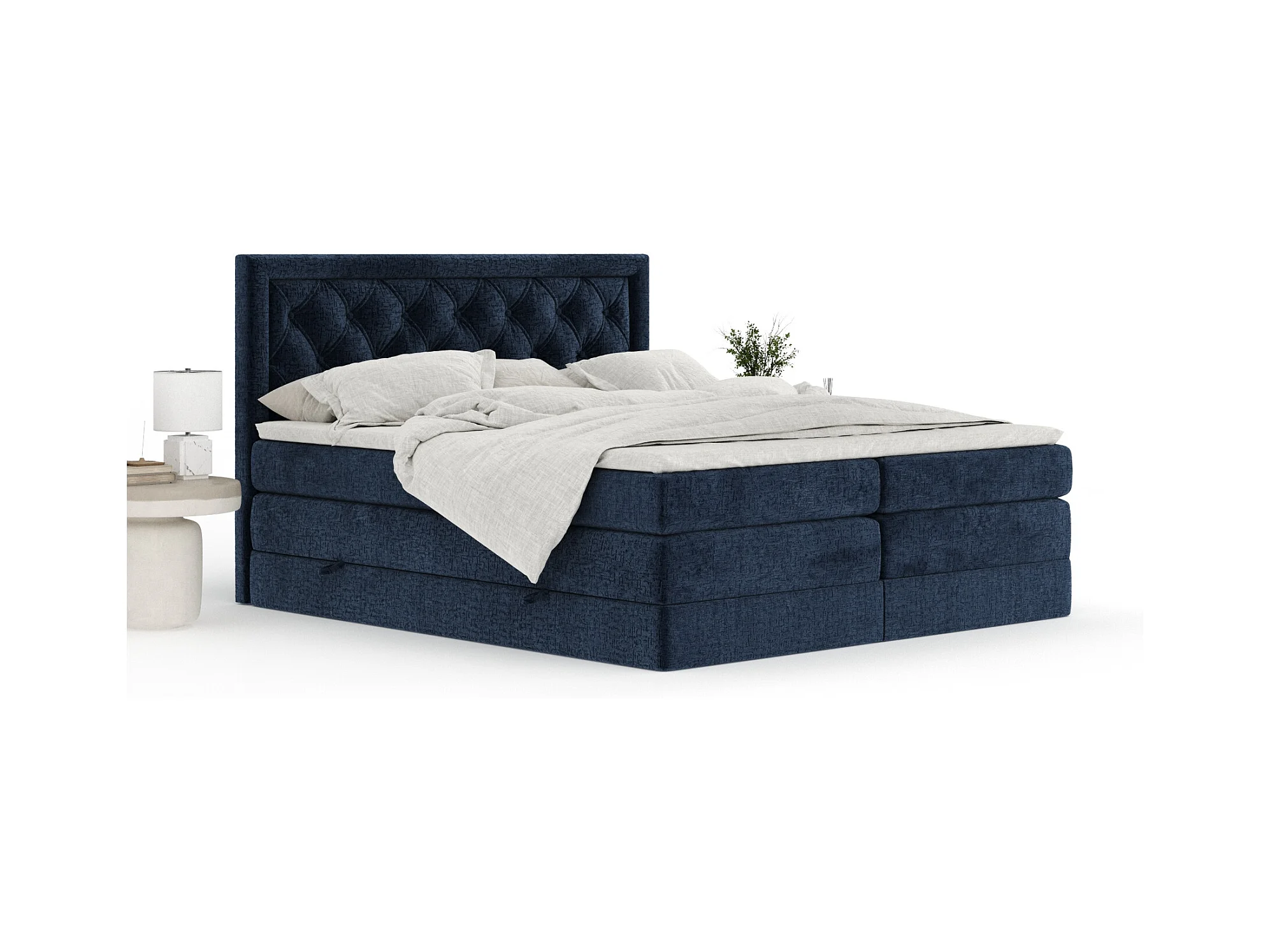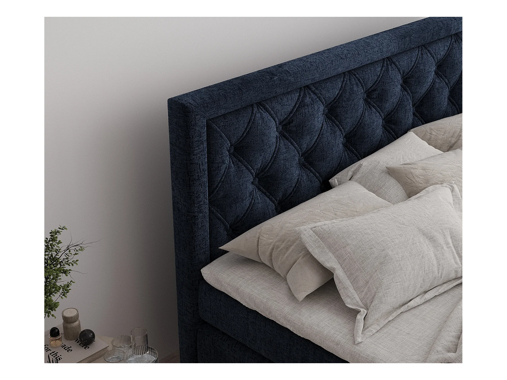 Boxspringbett aus Chenille-Stoff Juniper - Matratze - Toppermatratze - 160x200 cm - marineblau