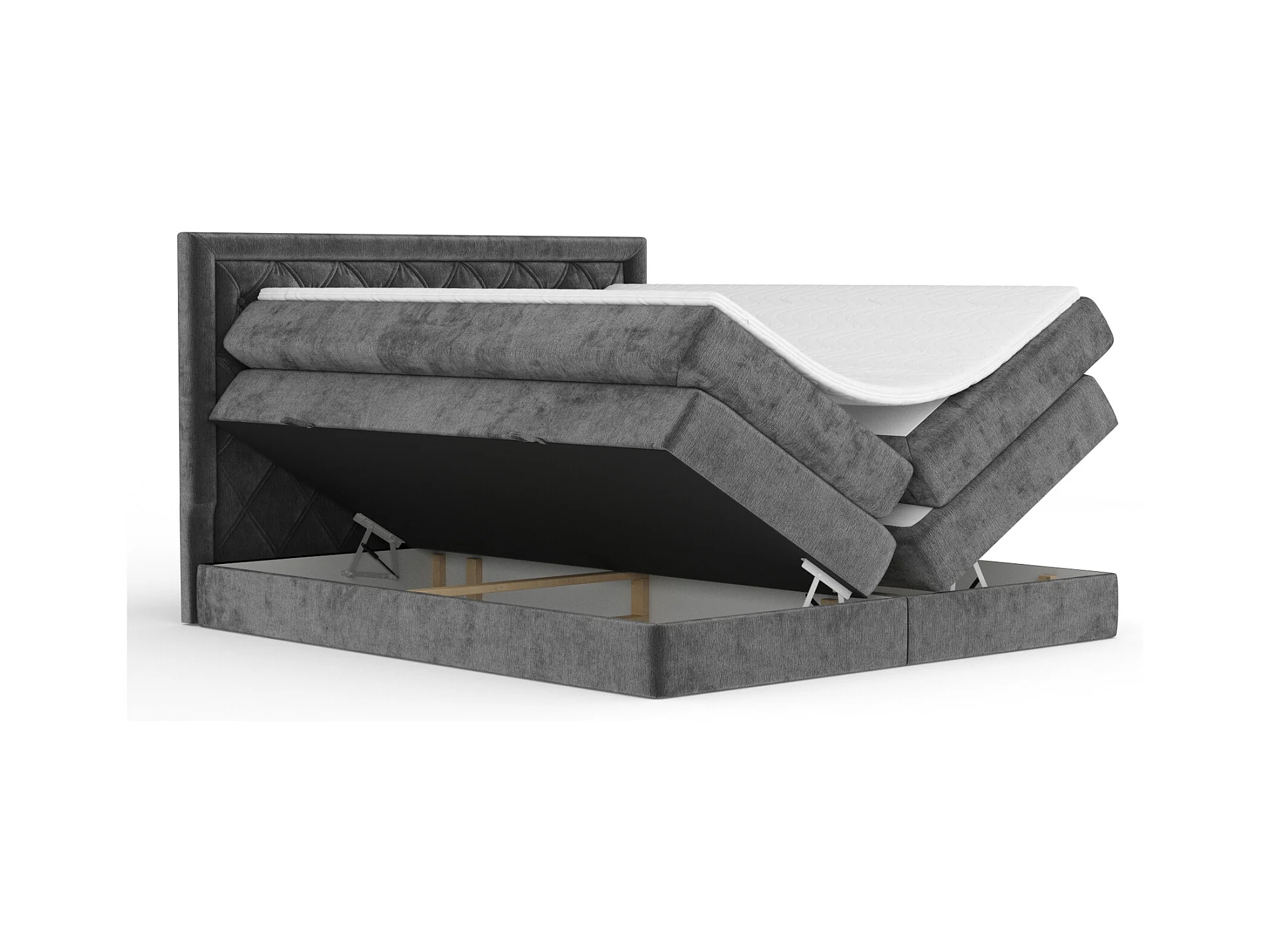 Boxspringbett aus Chenille-Stoff Juniper - Matratze - Toppermatratze - 180x200 cm - grau
