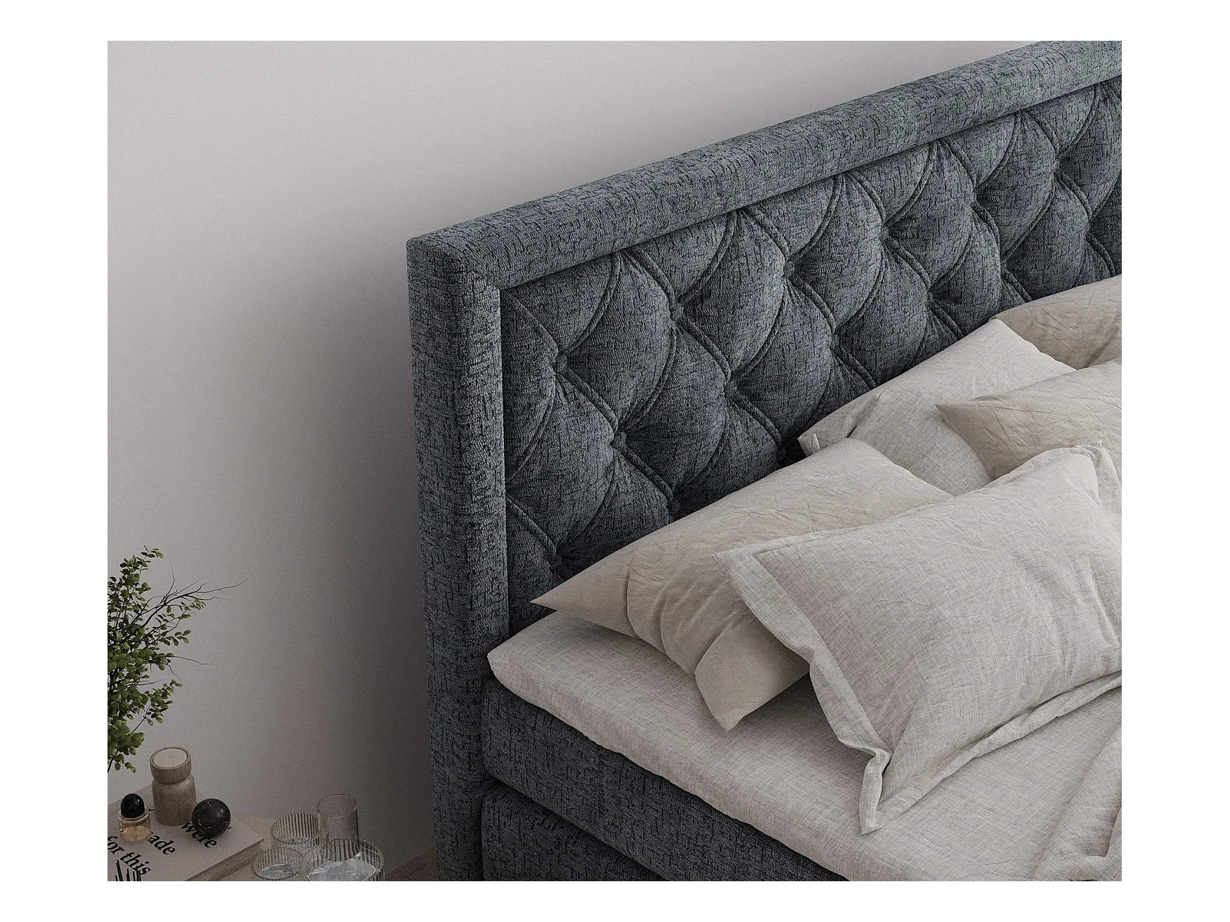 Boxspringbett aus Chenille-Stoff Ava - Matratze - Toppermatratze - 200x200 cm - grau