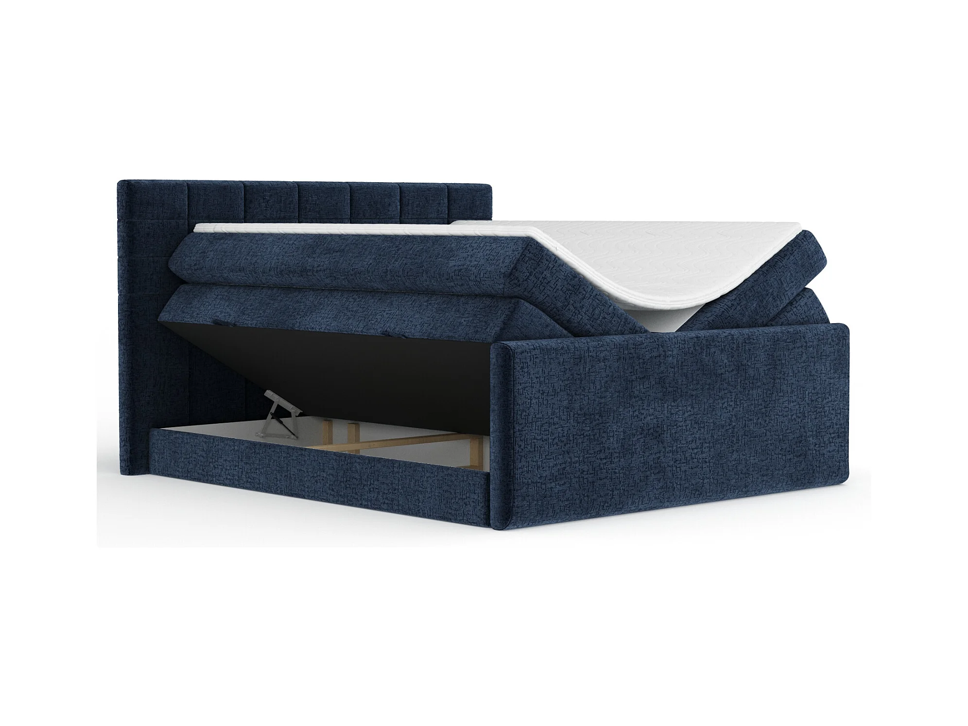 Boxspringbett aus Chenille-Stoff Juniper - Matratze - Toppermatratze - 140x200 cm - marineblau