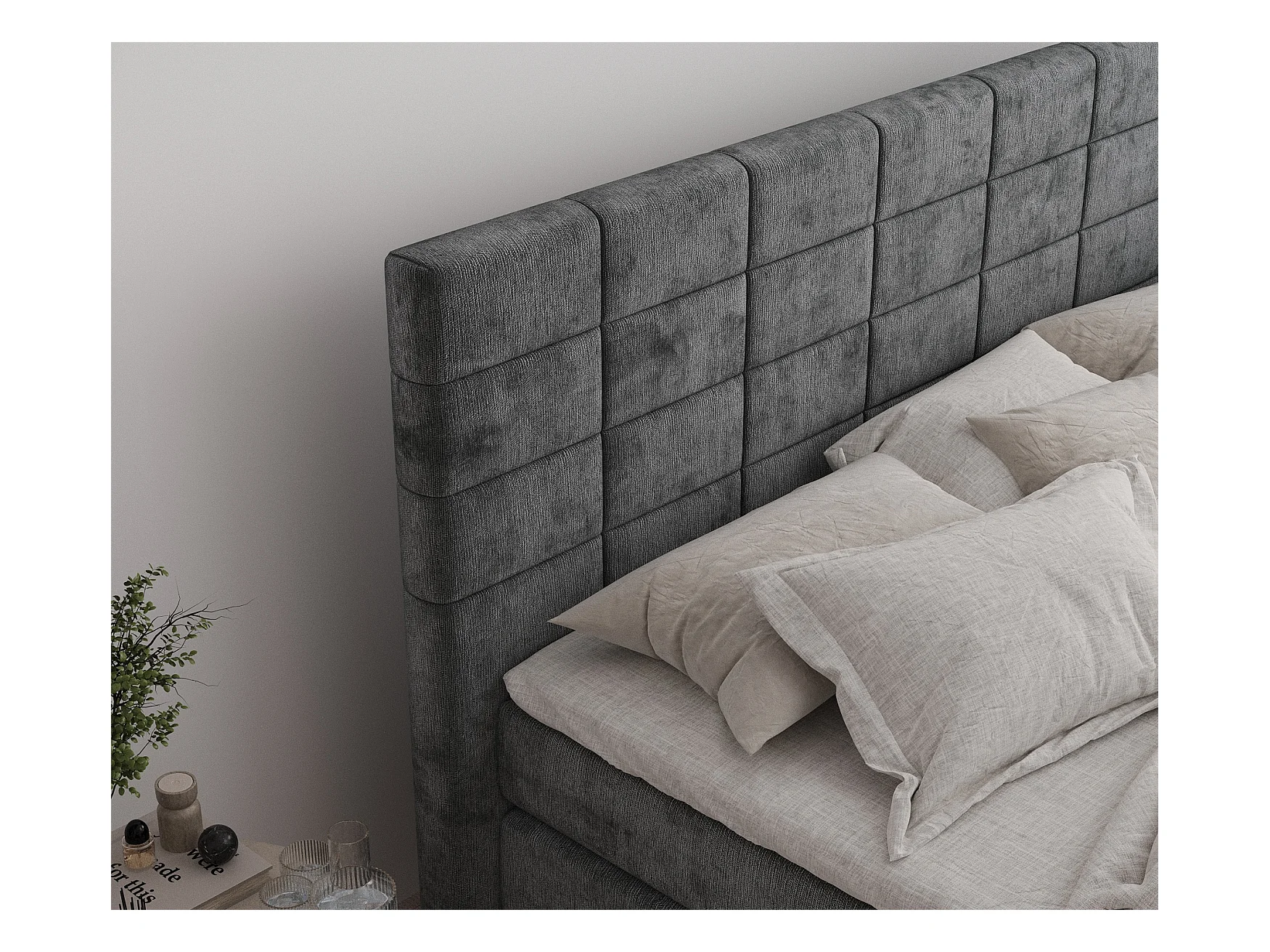 Boxspringbett aus Chenille-Stoff Ava - Matratze - Toppermatratze - 160x200 cm - dunkelgrau