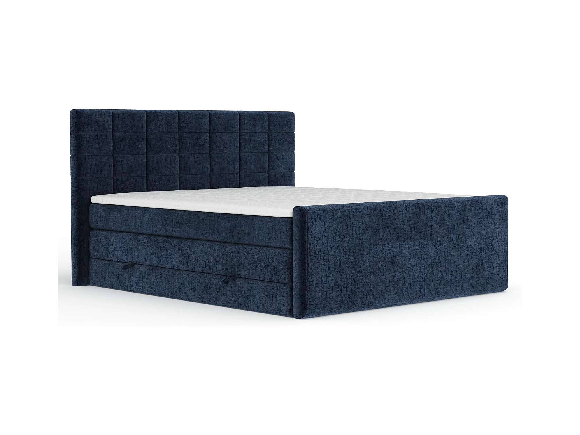 Boxspringbett aus Chenille-Stoff Ava - Matratze - Toppermatratze - 180x200 cm - marineblau