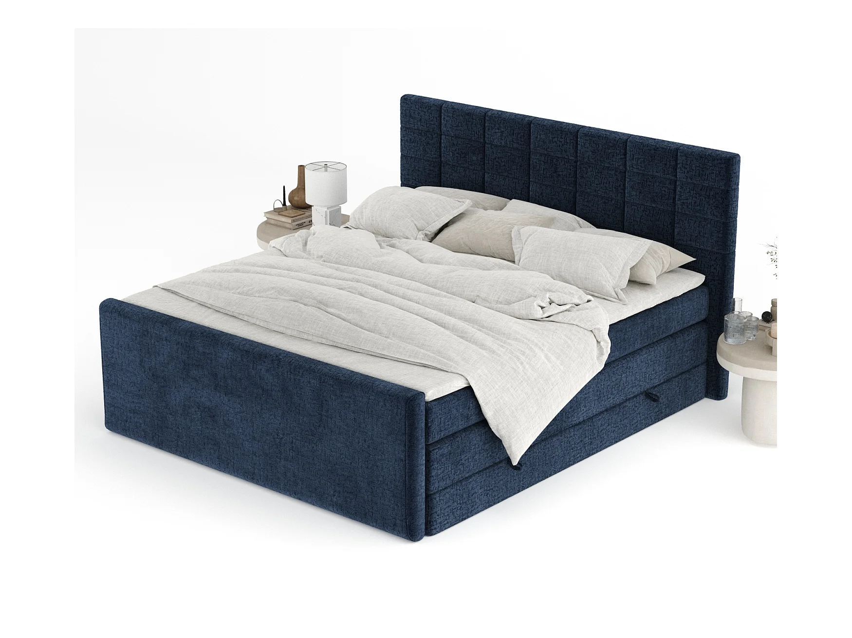 Boxspringbett aus Webstoff Freeland - Matratze - Toppermatratze - 180x200 cm - marineblau