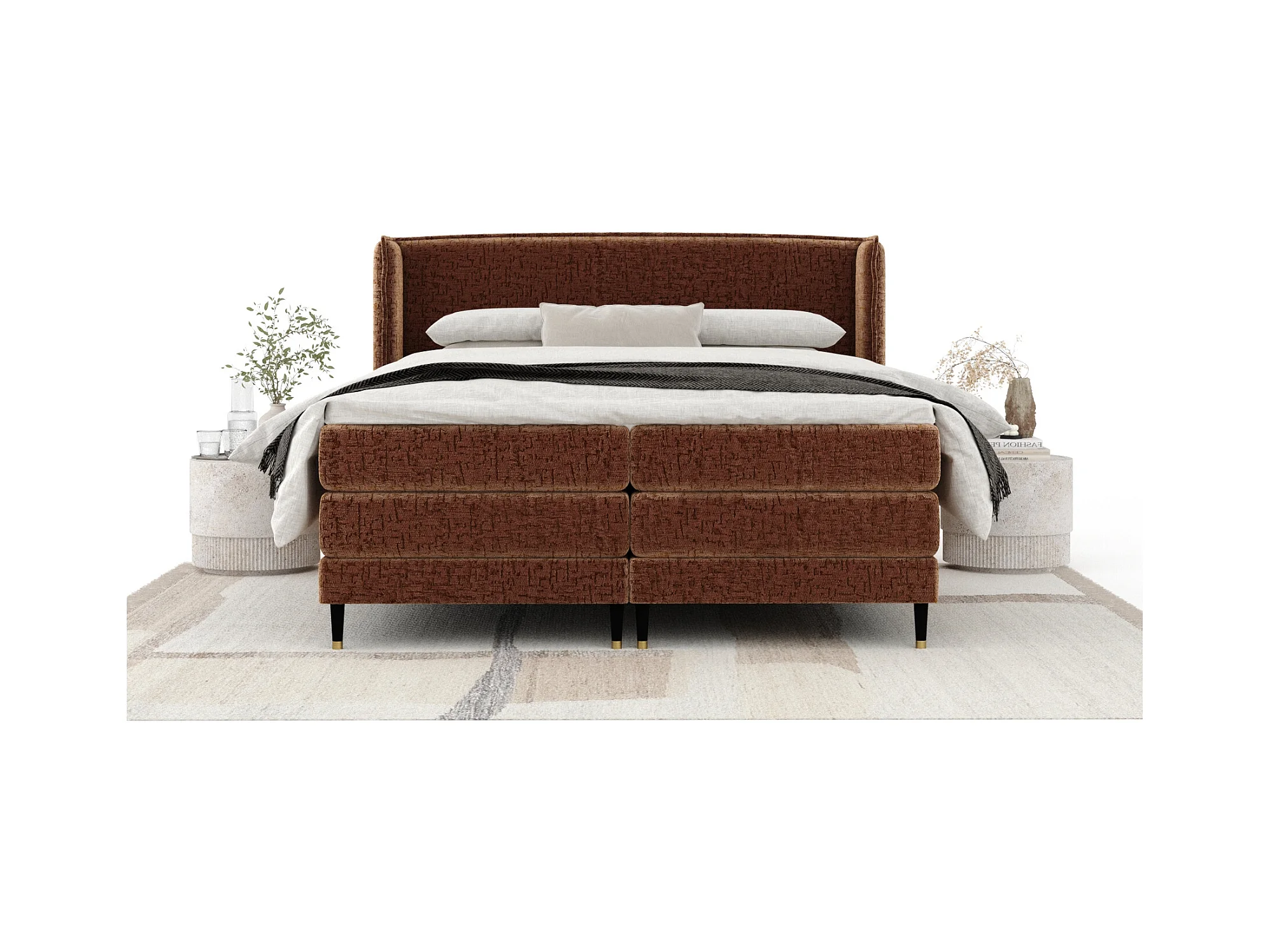 Boxspringbett aus Chenille-Stoff Juniper - Matratze - Toppermatratze - 140x200 cm - kupferfarbe