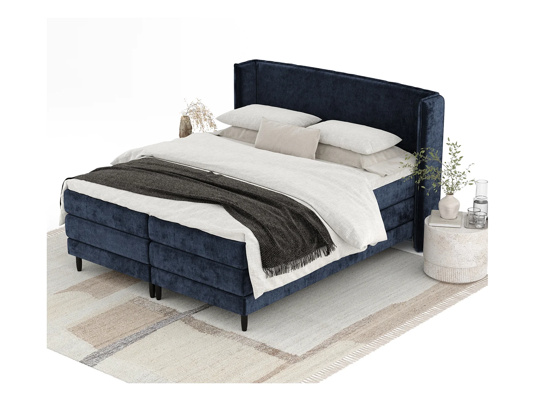 Boxspringbett aus Chenille-Stoff Passion - Matratze - Toppermatratze - 140x200 cm - marineblau