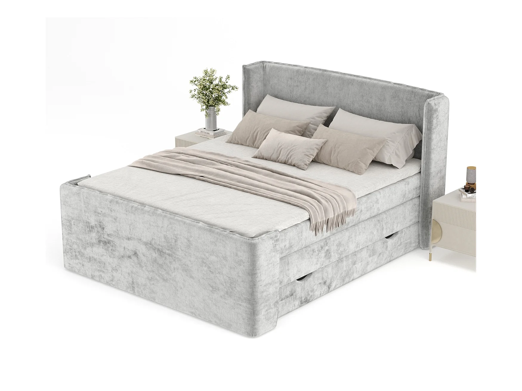 Boxspringbett aus Chenille-Stoff Aurelia - Matratze - Toppermatratze - 140x200 cm - grau